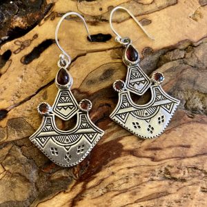 Boucles d’oreilles Allongées Touareg Argent et Grenat