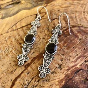Boucles d’oreilles Allongées Touareg Argent et Trio Onyx