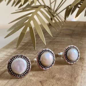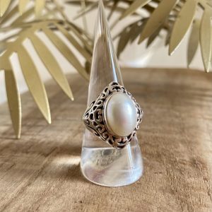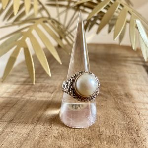Bague Perle ronde et Argent travaillé