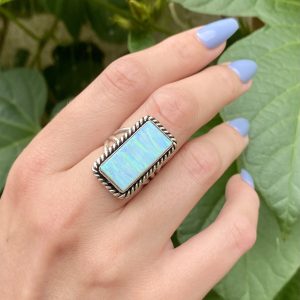 Bague Opale Bleue Rectangle Etats-Unis