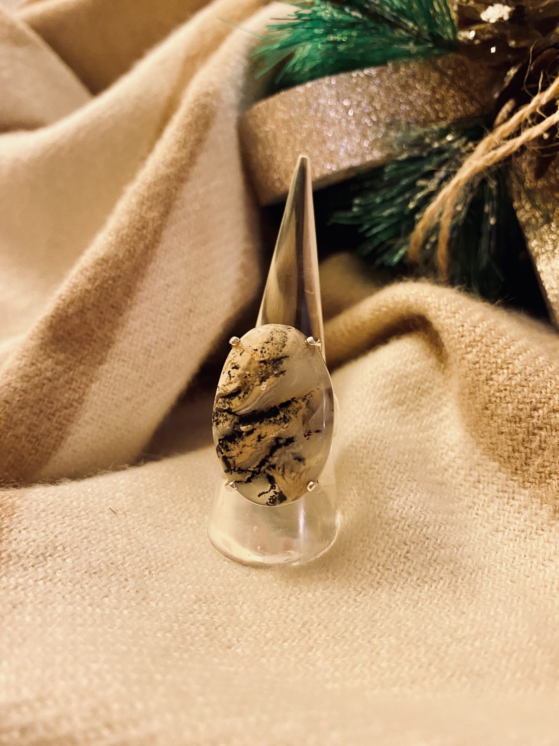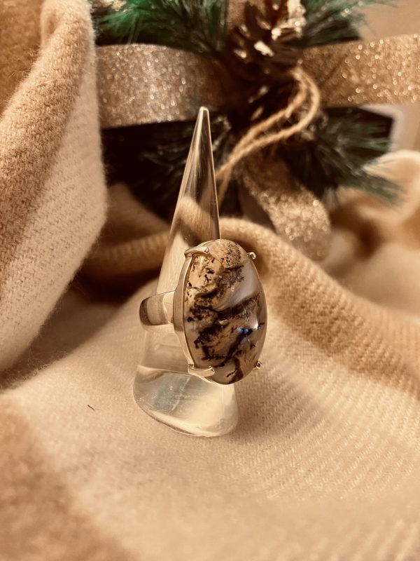L’agate Montana est une très belle pierre de la famille des agates avec un fond transparent avec une déclinaison de marron et de noir.