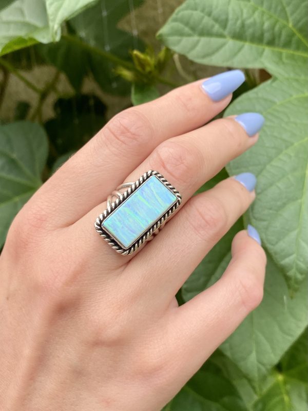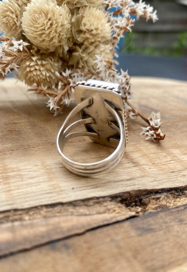 La pierre est taillée en rectangle et anneau de la bague doublé.
