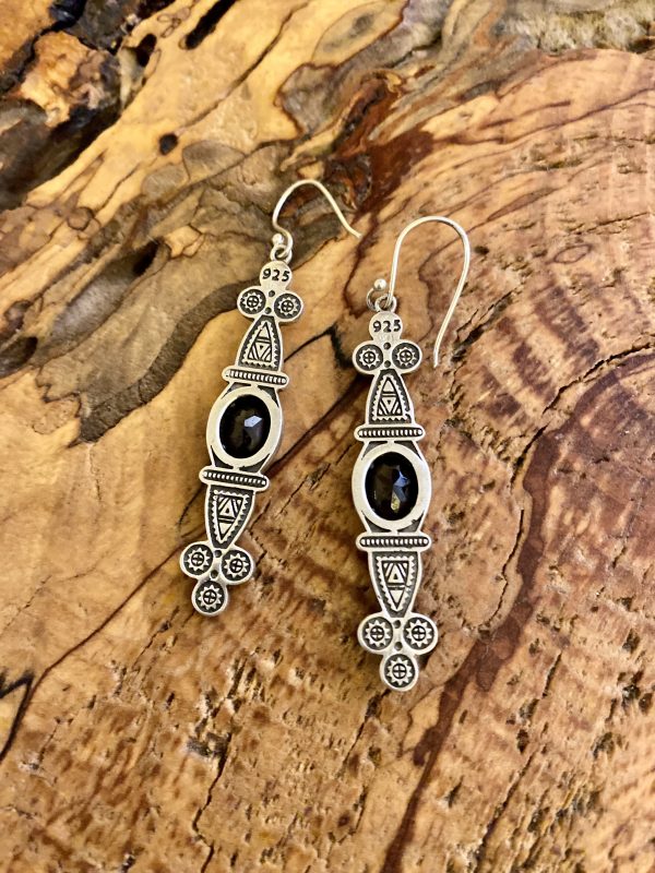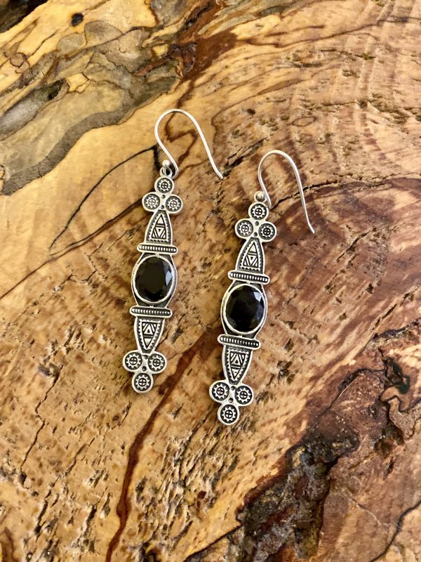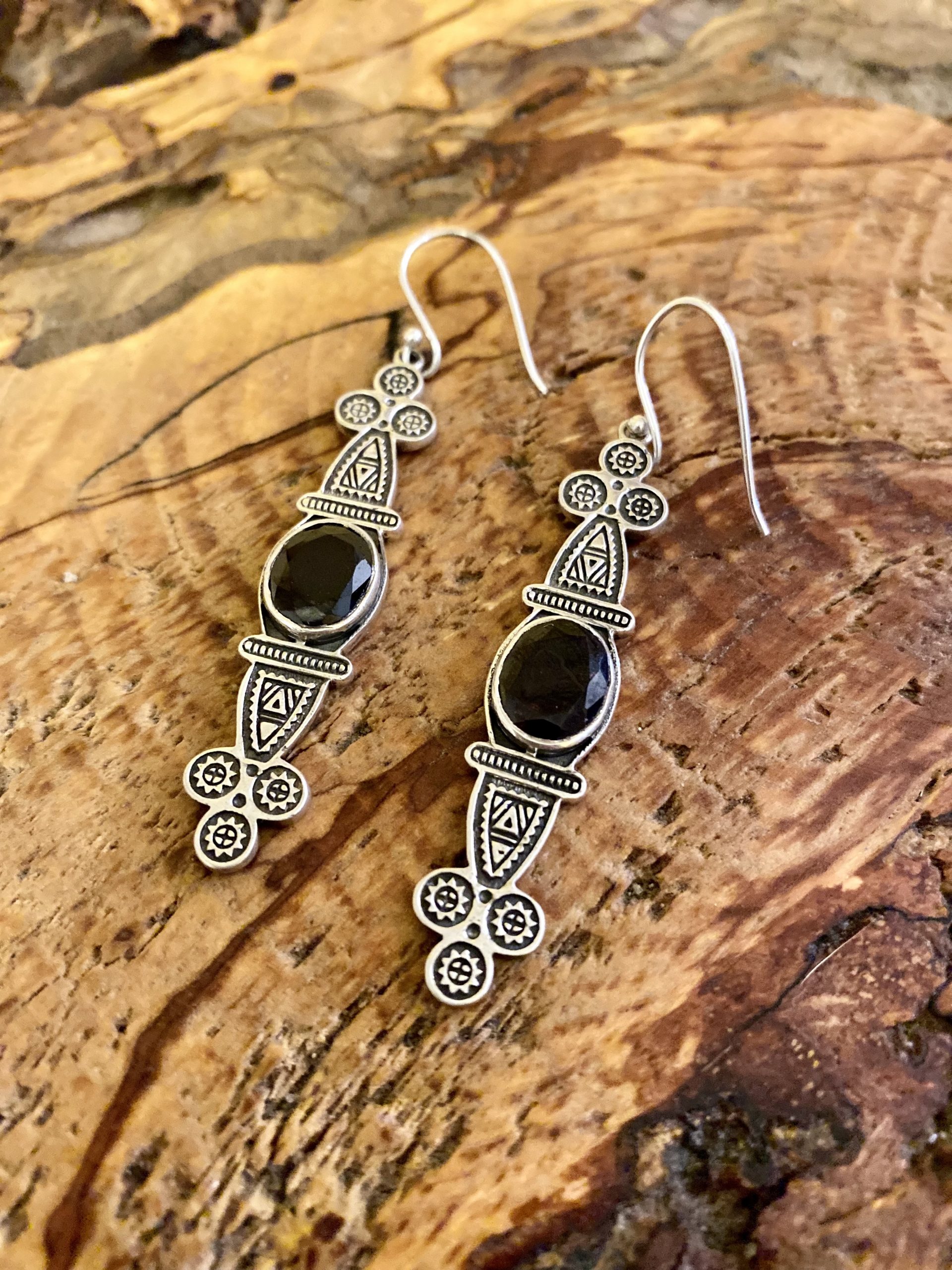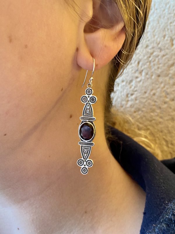 Boucles d’oreilles Allongées Touareg Argent et Grenat