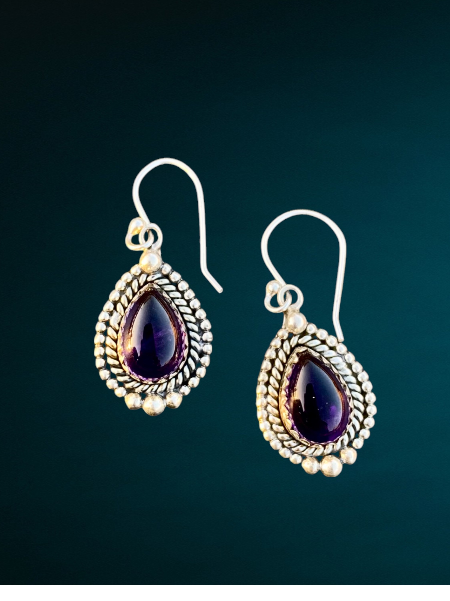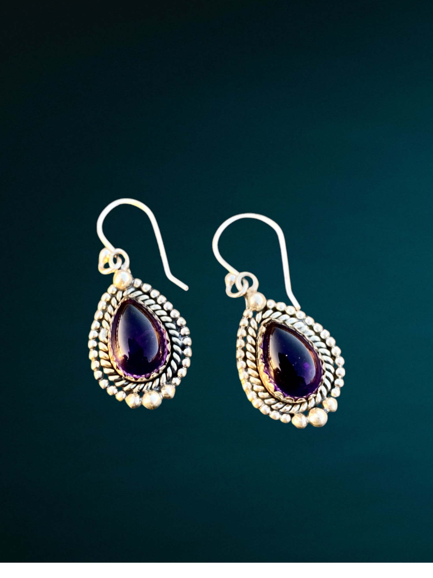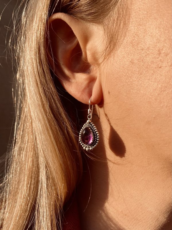Paire de boucles d’oreilles en argent 925 et améthyste