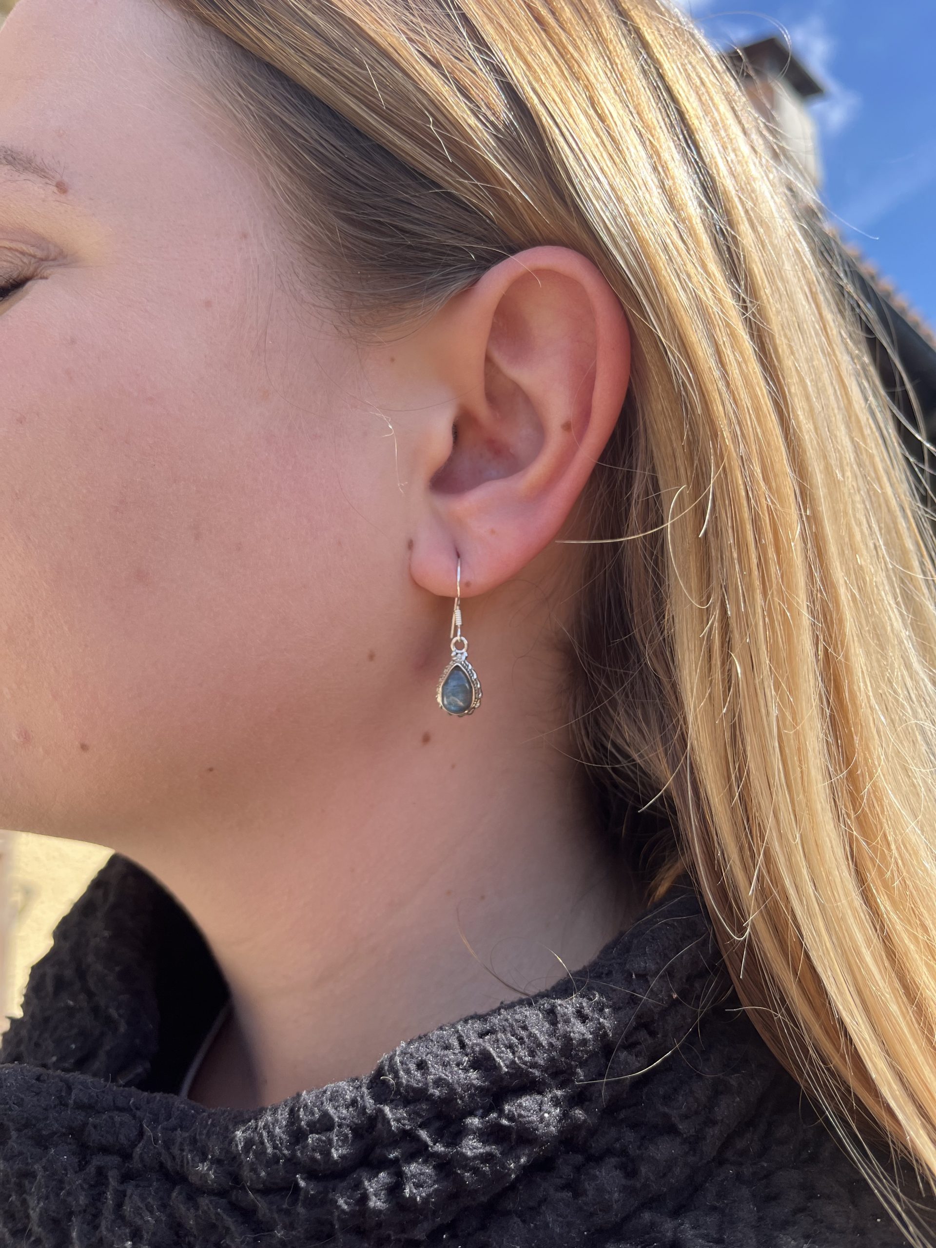 Boucles d’oreille en argent 925 et labradorite.