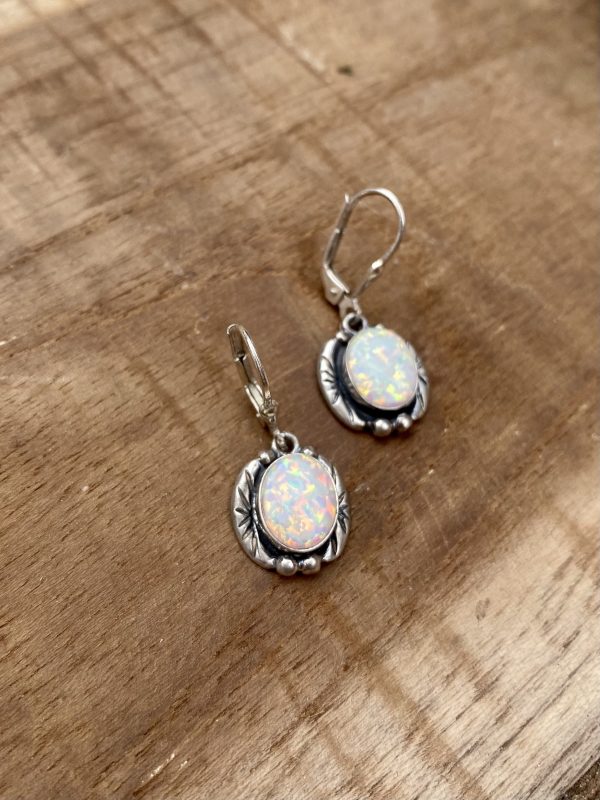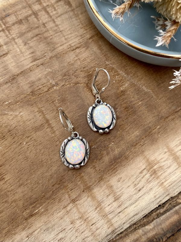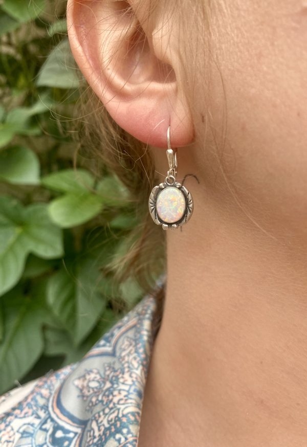 Boucles d’oreilles en argent 925 et opale blanche du Mexique.
