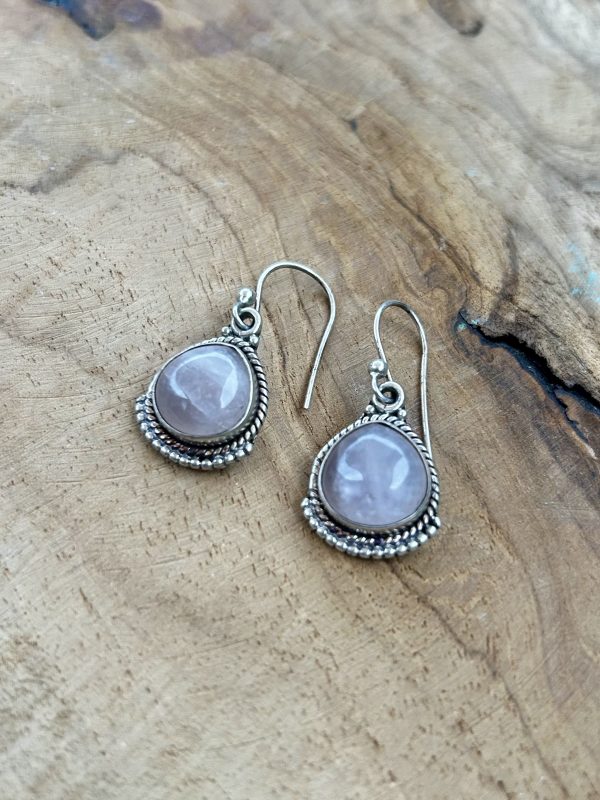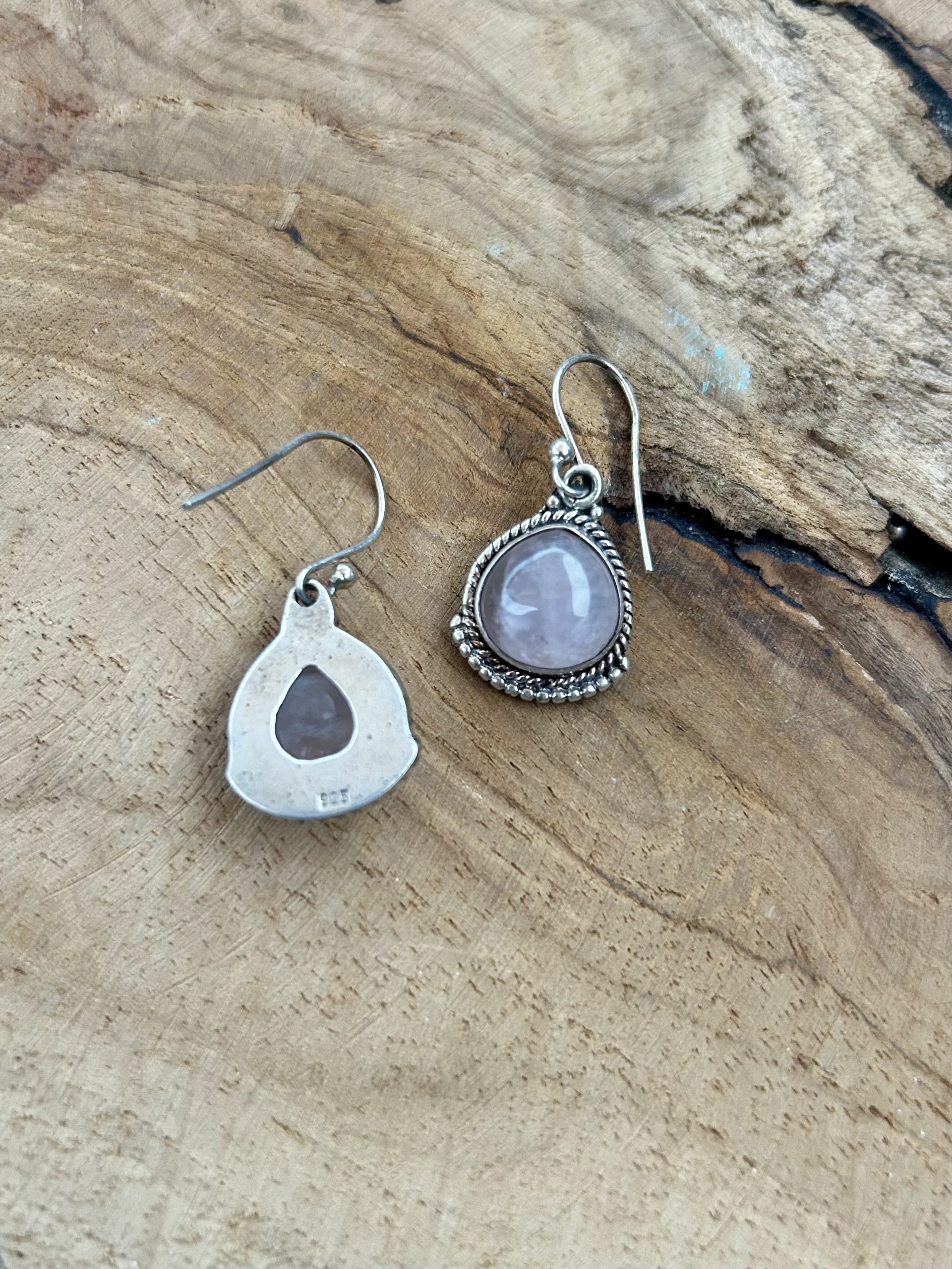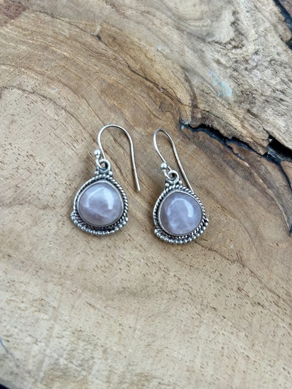 Boucles d’oreilles en quartz rose monté sur de l’argent 925