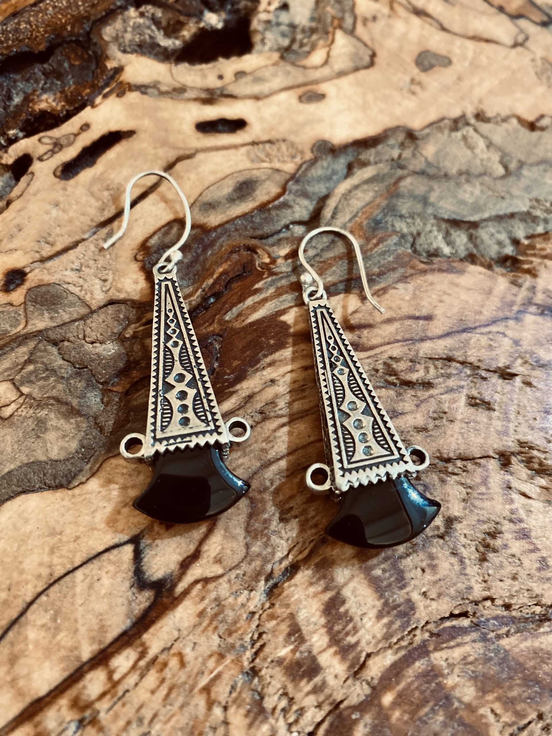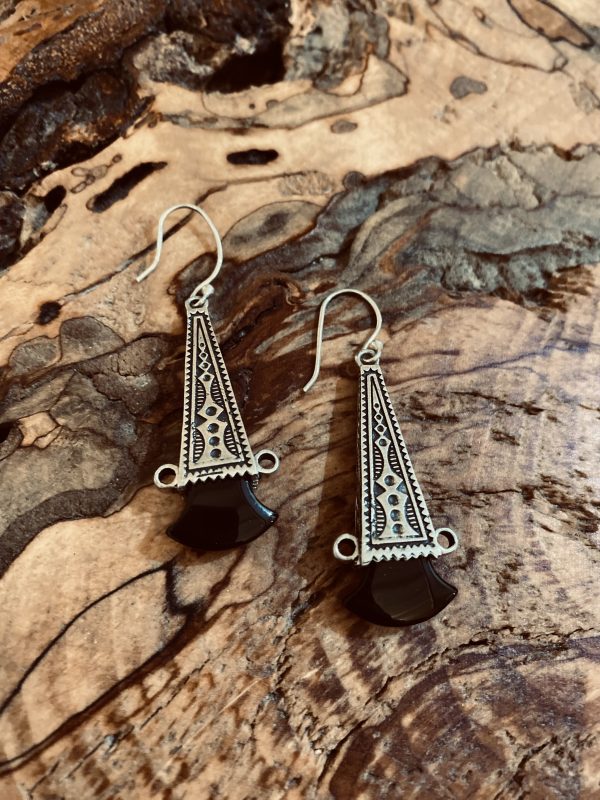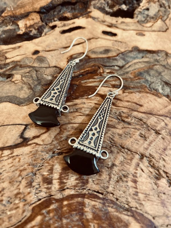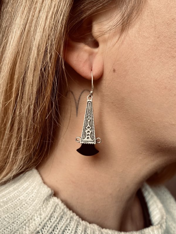 Boucles d’oreilles Touareg allongées Argent Onyx