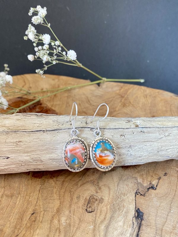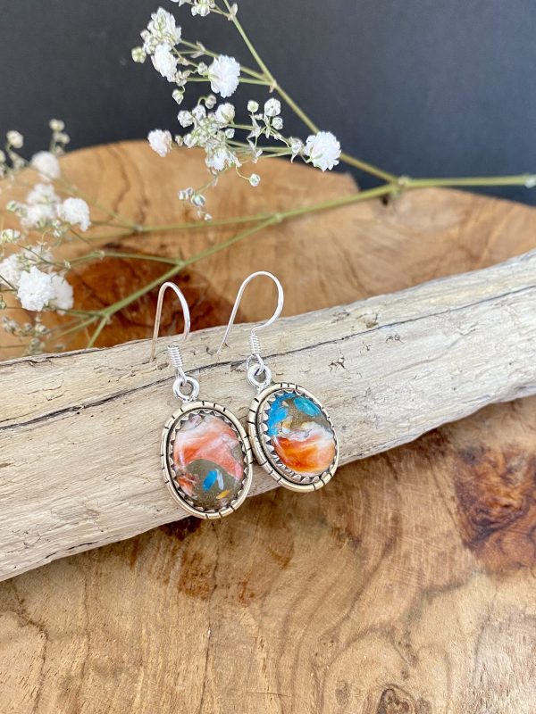 Paire de boucles d’oreilles en argent 925 et turquoise Cooper