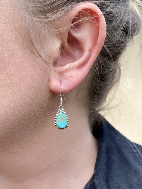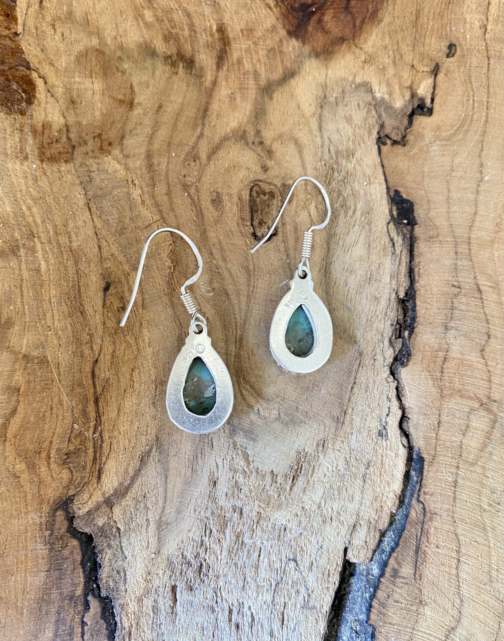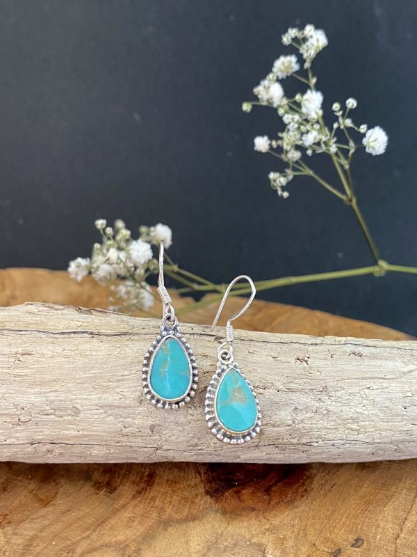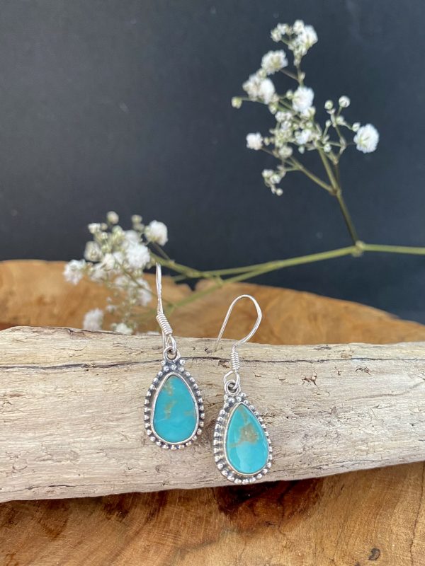 Paire de boucles d’oreilles en argent 925 et véritables turquoises.