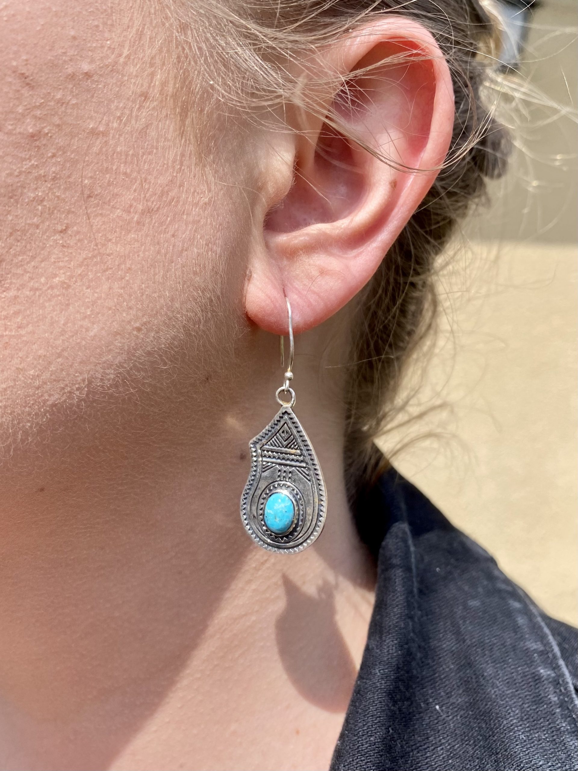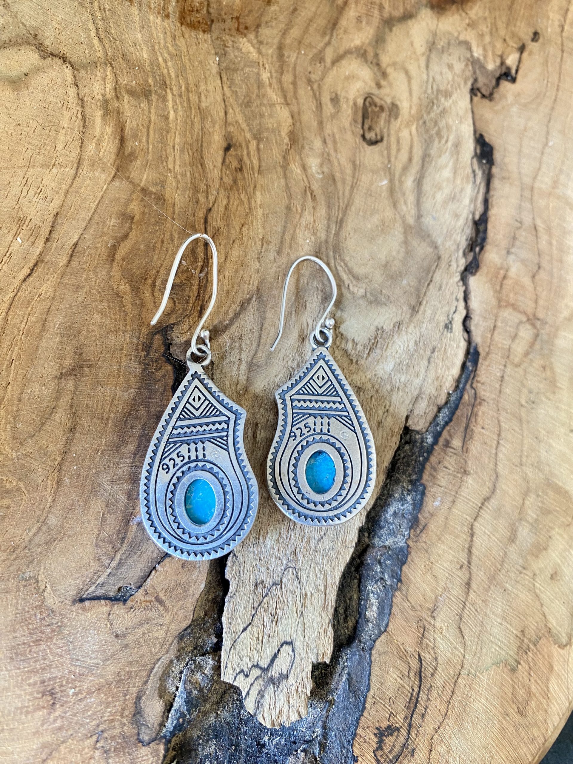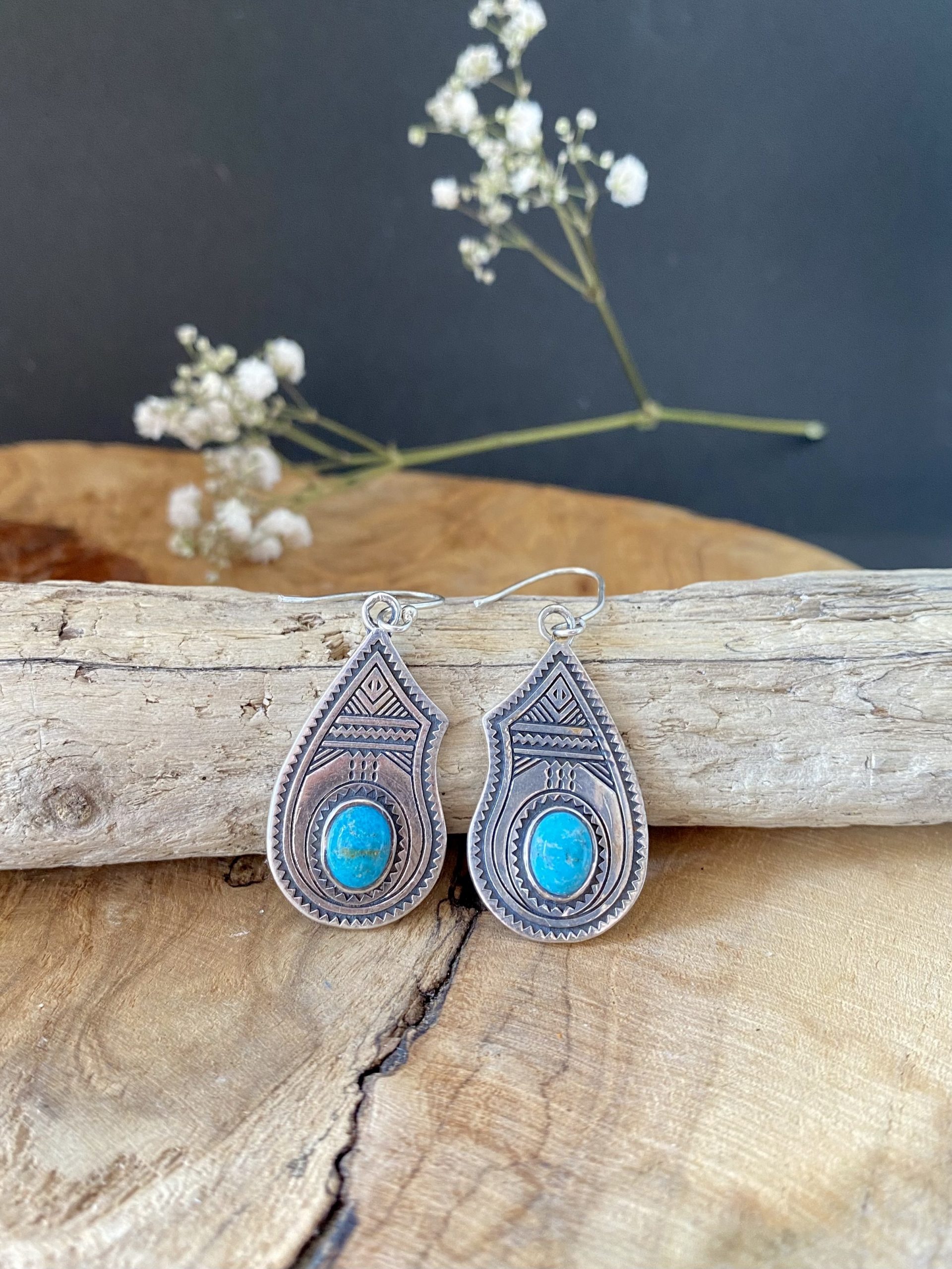 Paire de boucles d’oreilles en argent 925 et turquoise