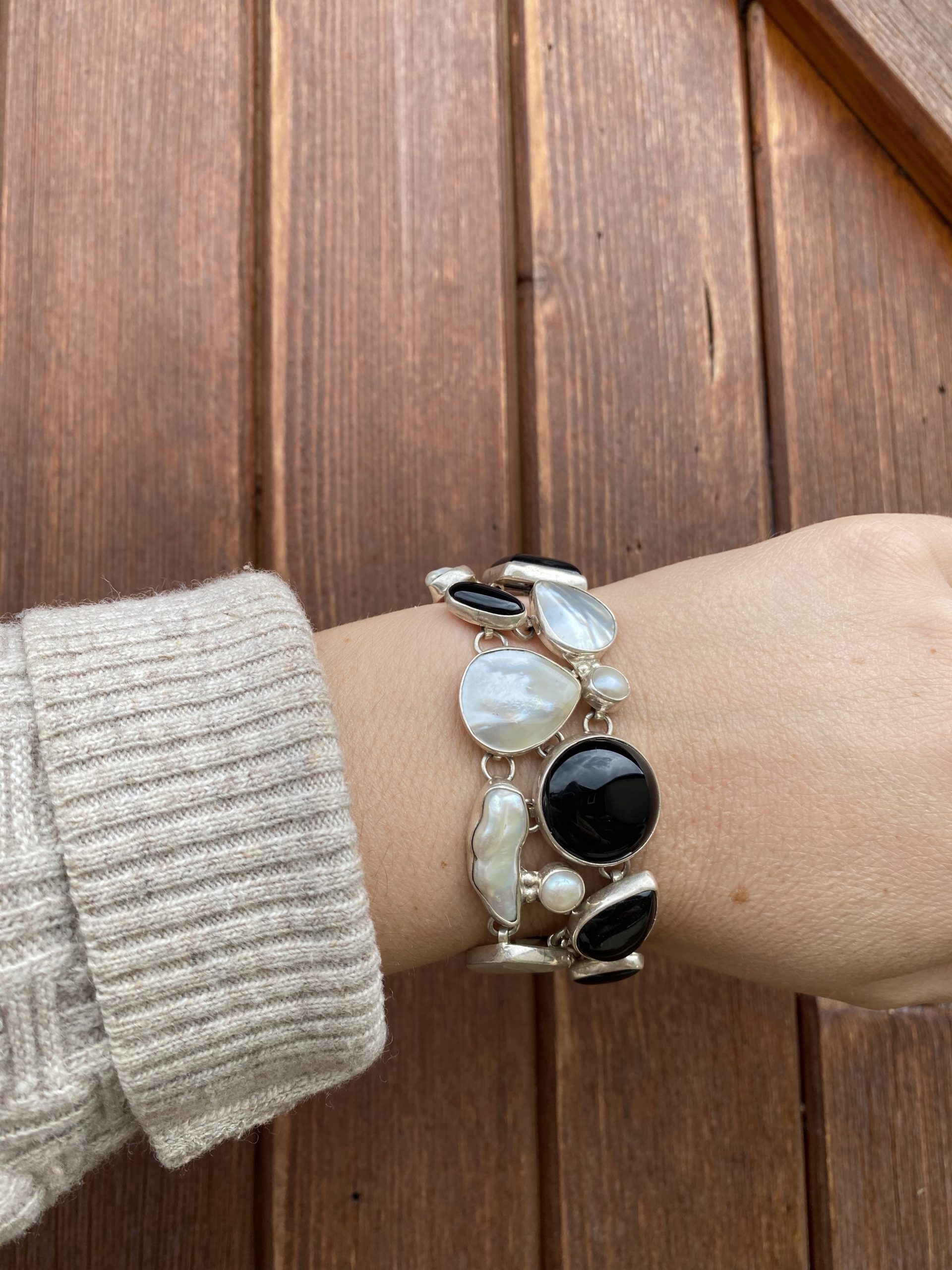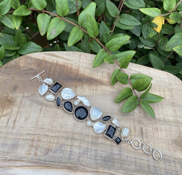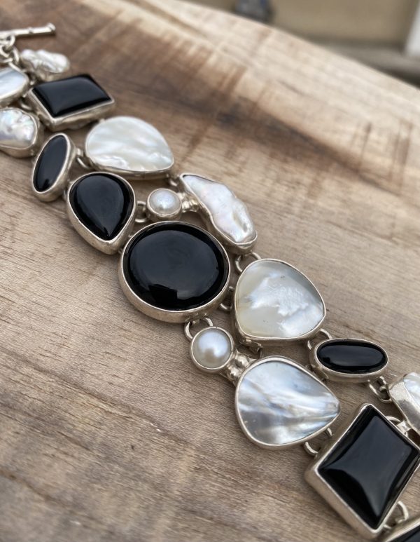 Bracelet Large Nacre, Perle et Onyx