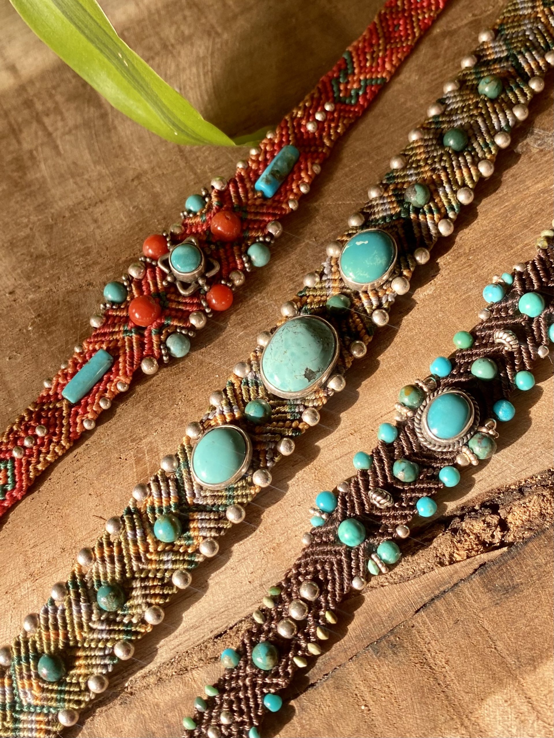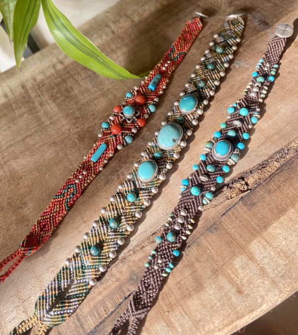 Bracelet en Macramé, technique originaire de l’Asie de l’Est. Créatrice française depuis plus de 20 ans.