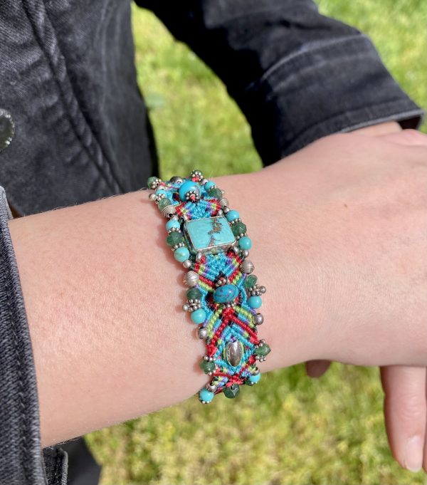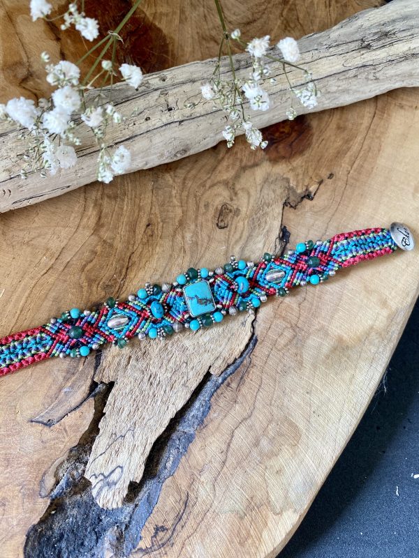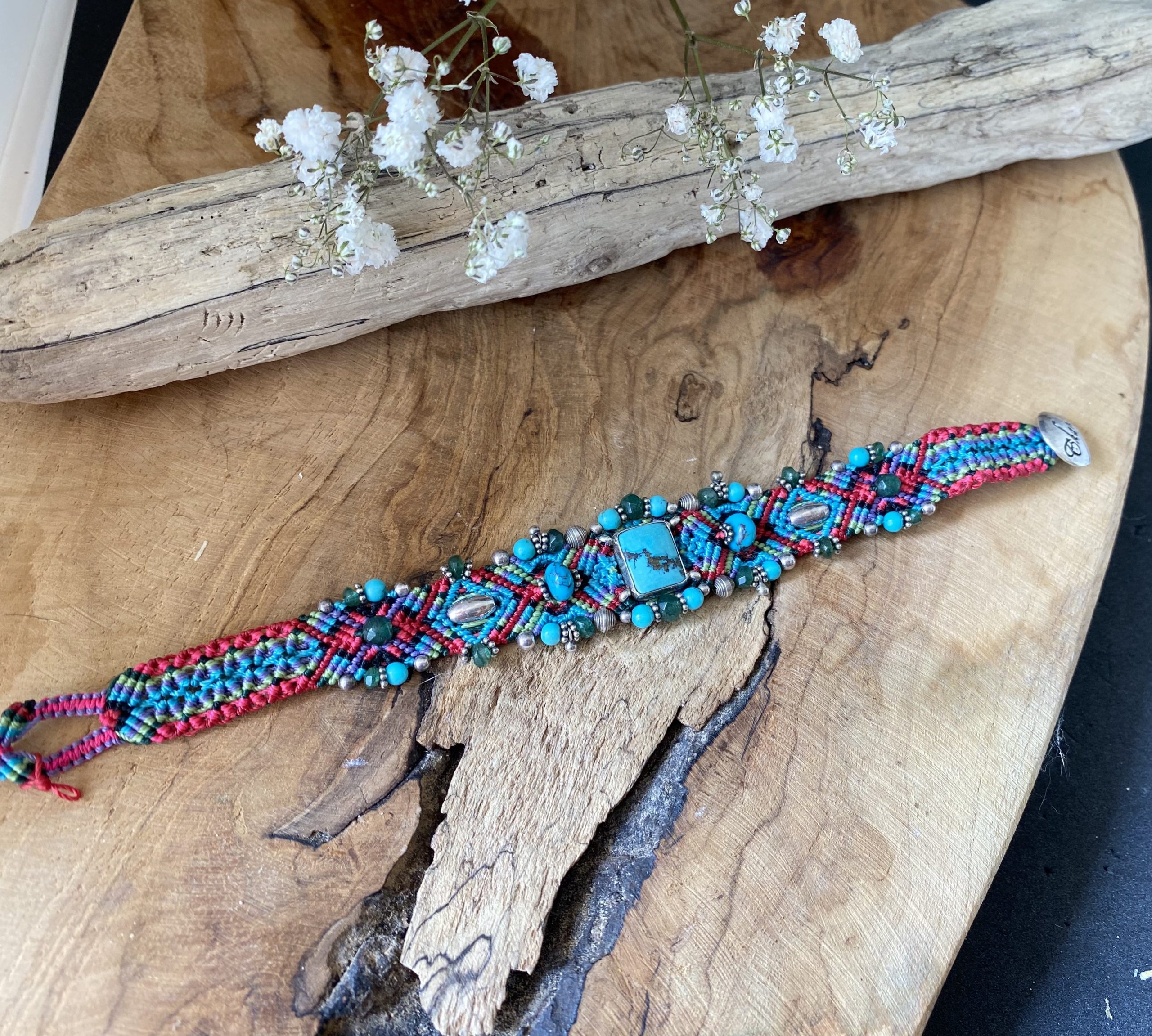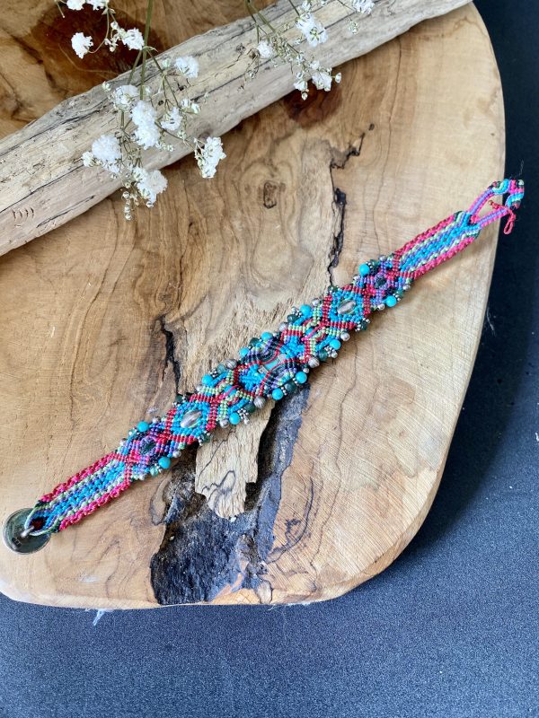 Bracelet en Macramé, technique originaire de l’Asie de l’Est. Créatrice française depuis plus de 20 ans.