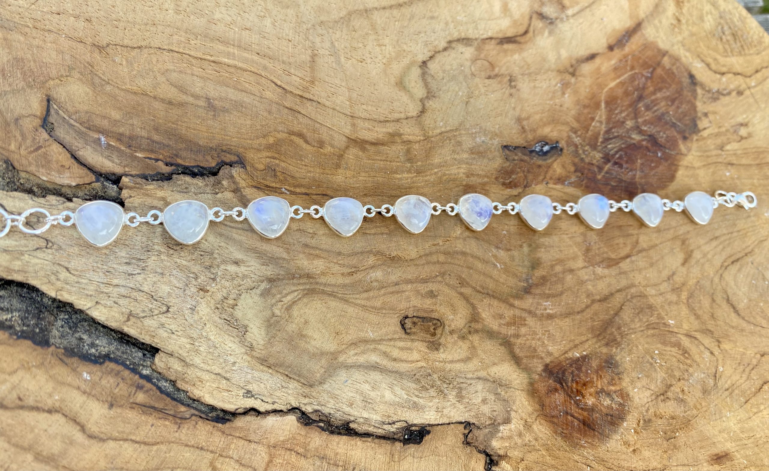 Les pierres de lune sont taillés en cabochon et serties en argent 925
