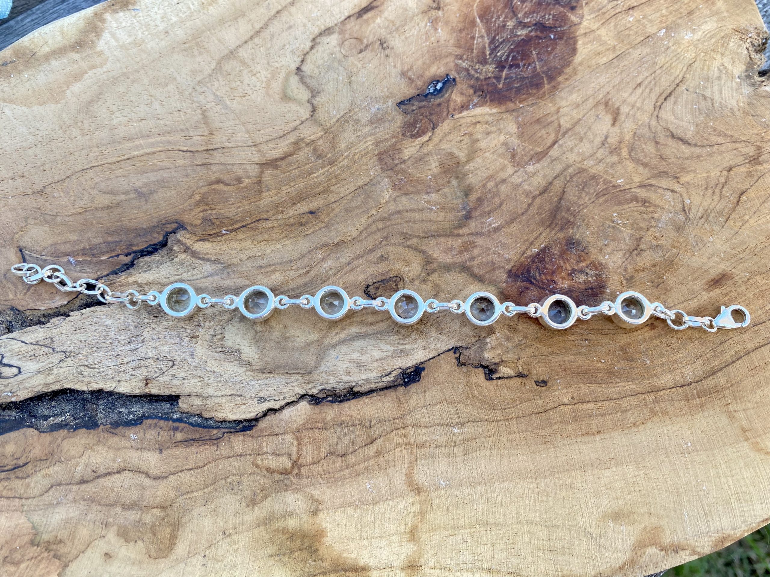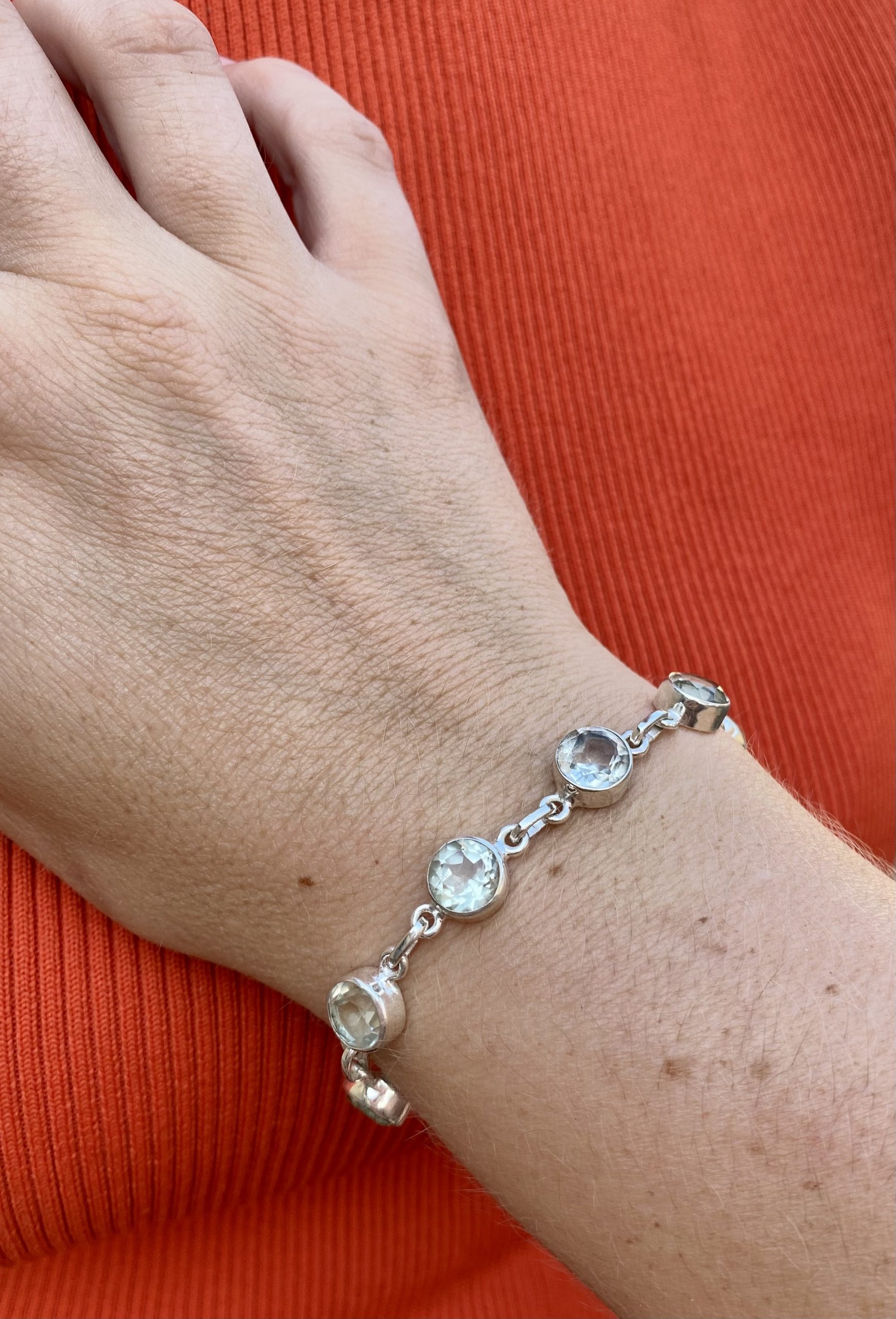 Bracelet en argent 925 et prasiolite, cette pierre est aussi connue sous le nom d’améthyste verte.