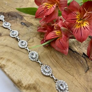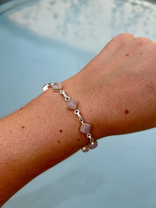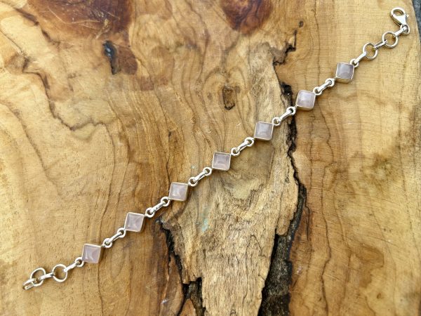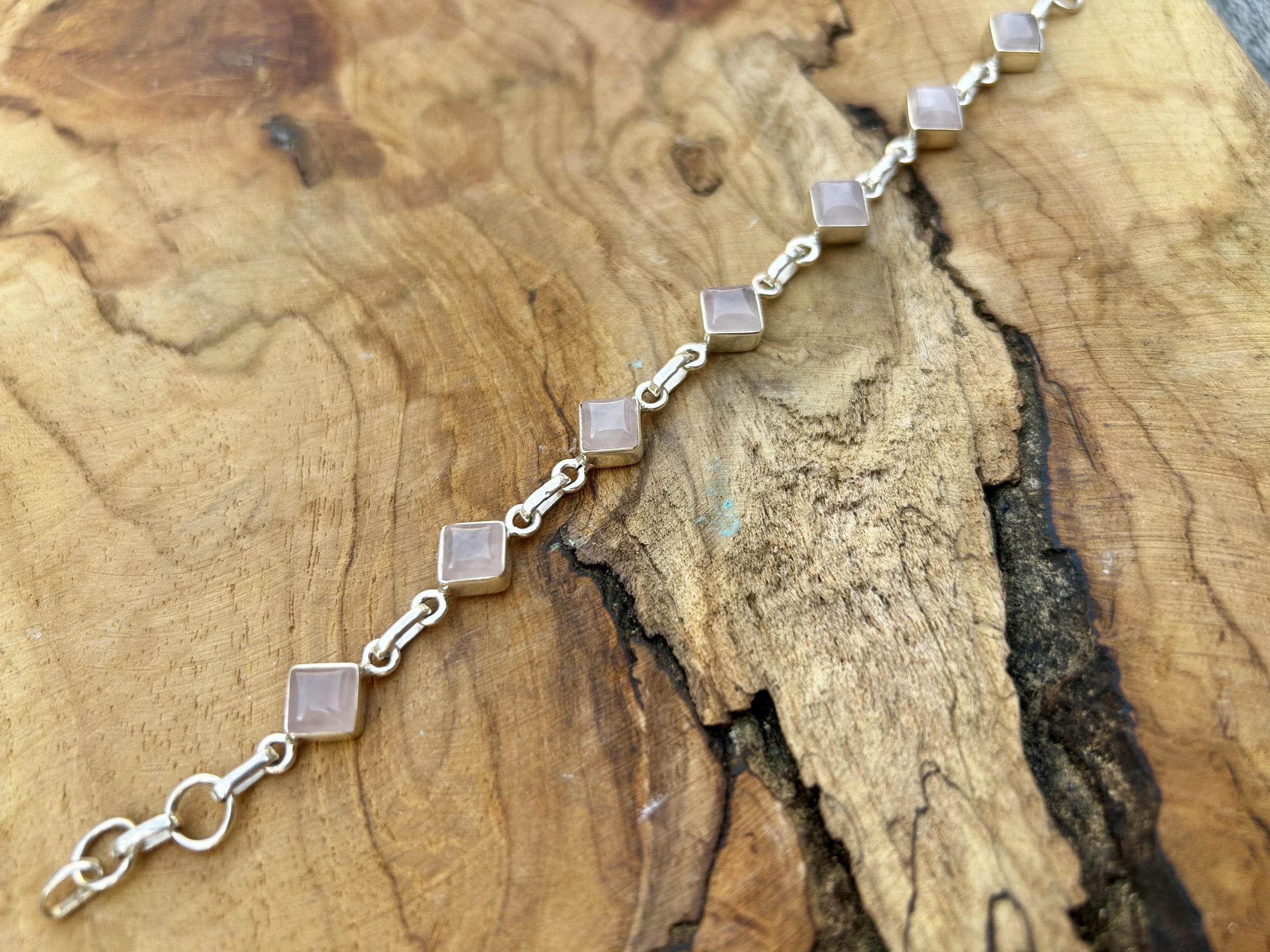 Bracelet en argent 925 avec 7 pierres de quartz rose