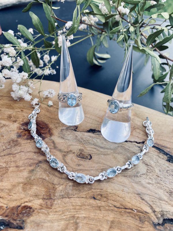 La topaze bleue est réputée pour attirer l’inspiration. Comme les autres pierres bleues, elle est associée au chakra de la gorge pour la communication.