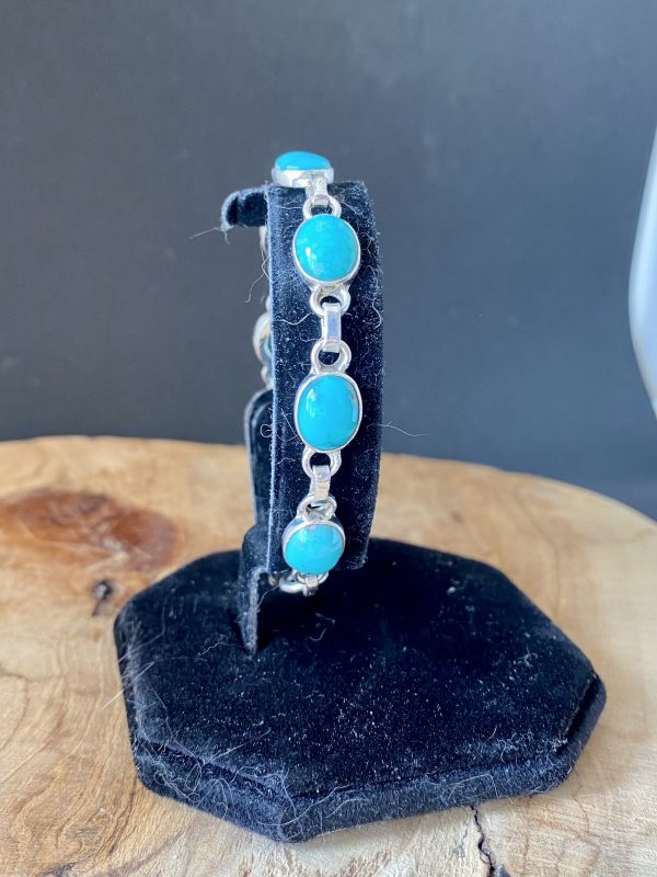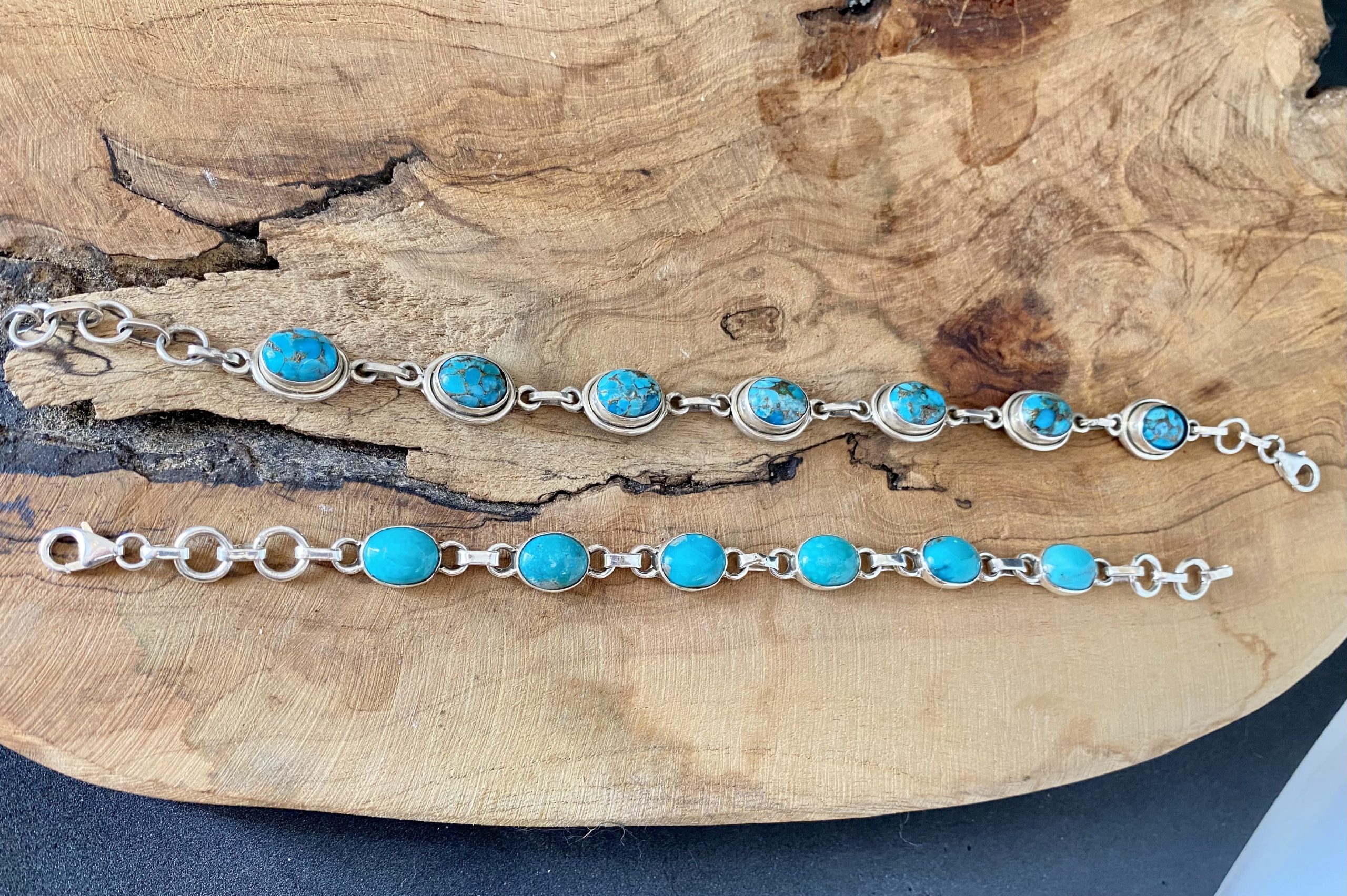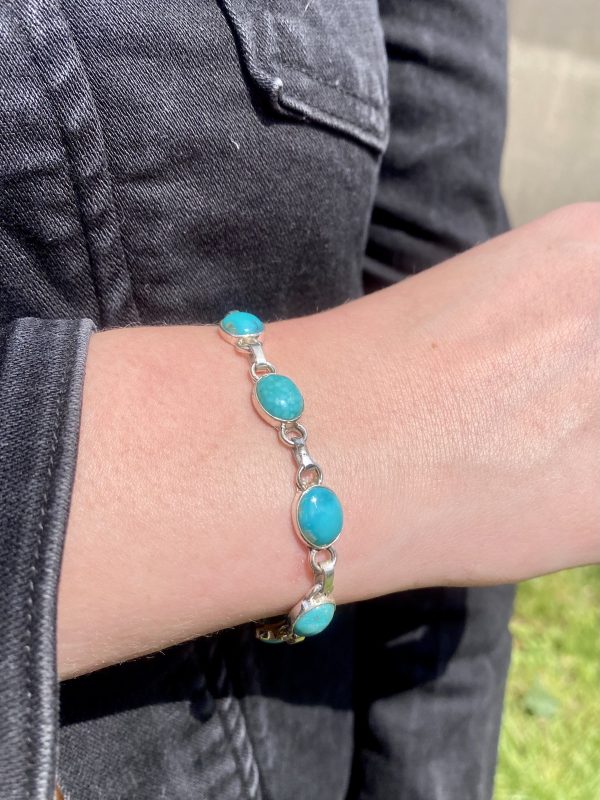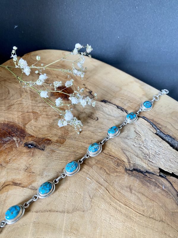 Ce magnifique bracelet comporte de très belles pierres de turquoise en sertissage clos.