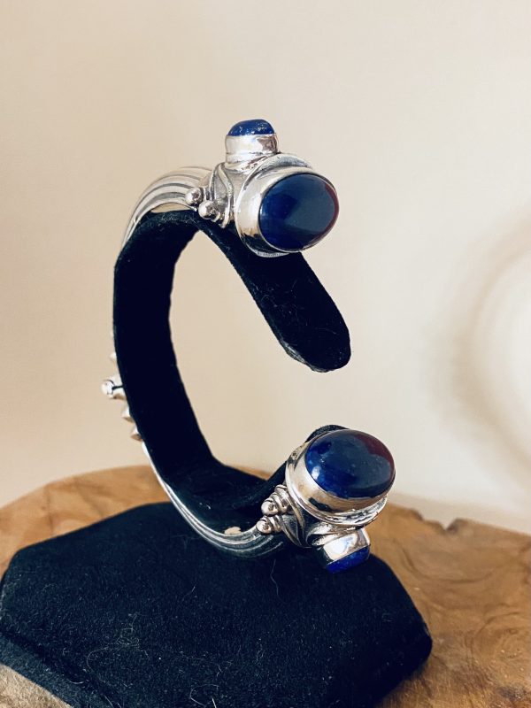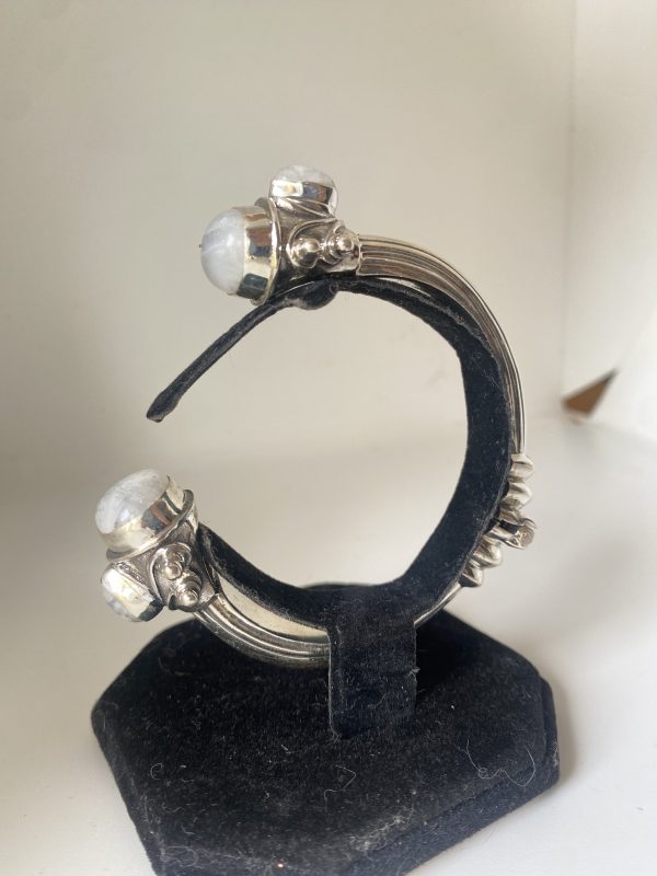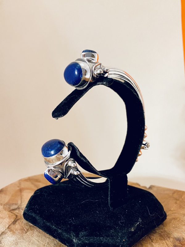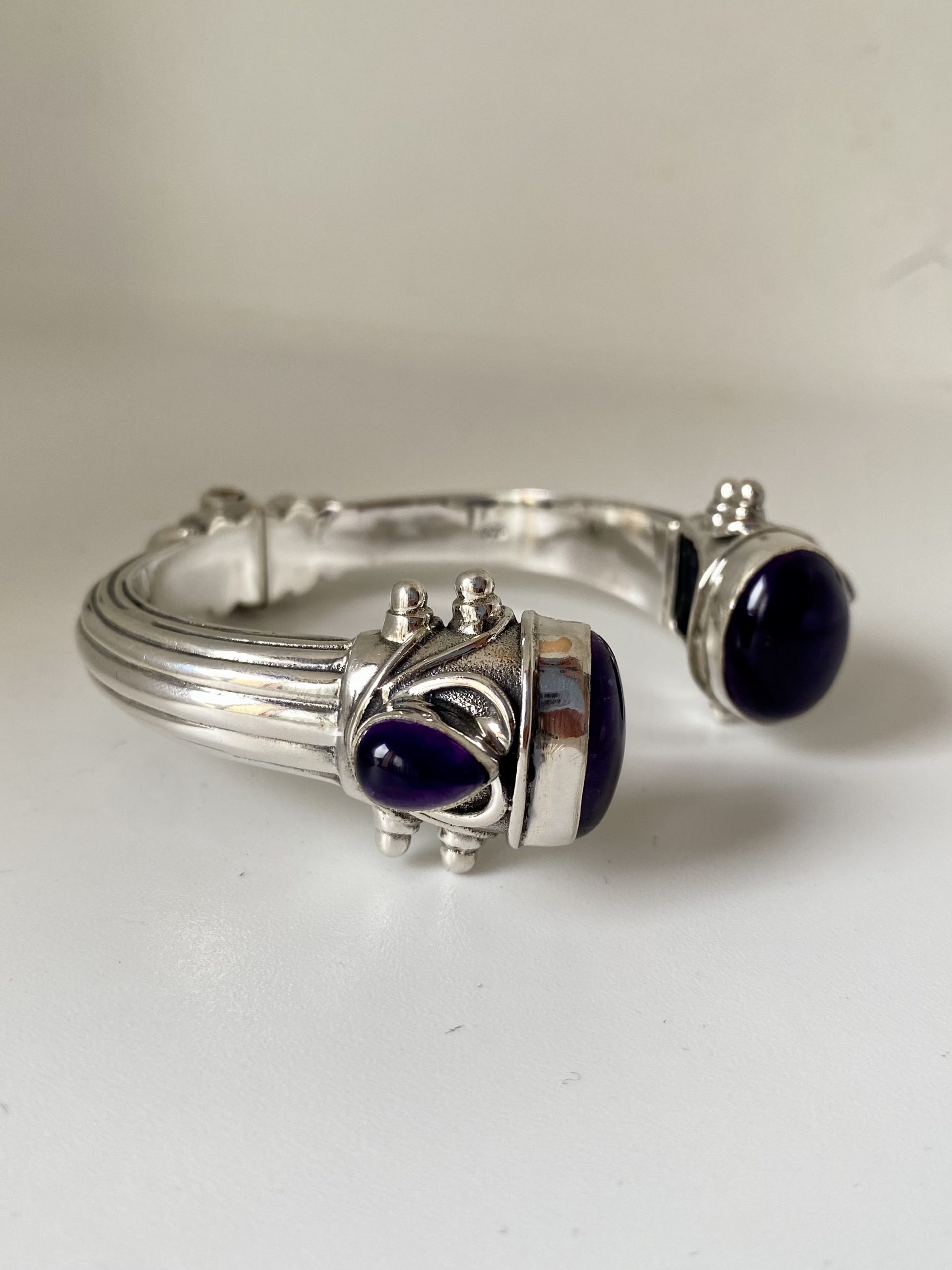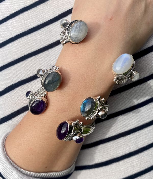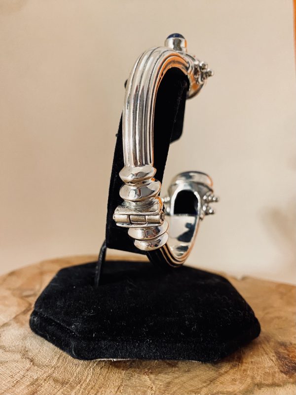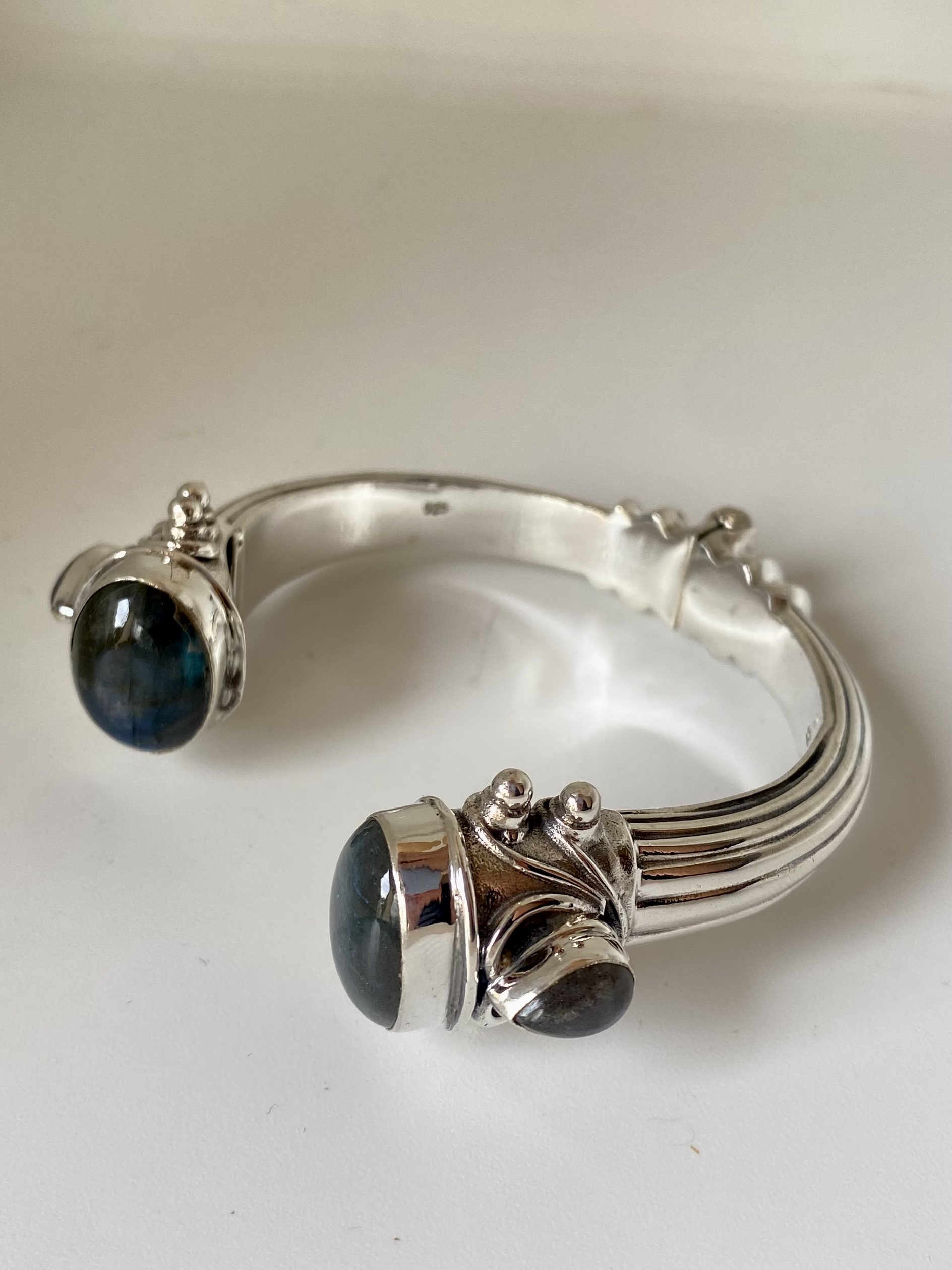 Bracelet ouvert lourd en argent 925 et pierres fines