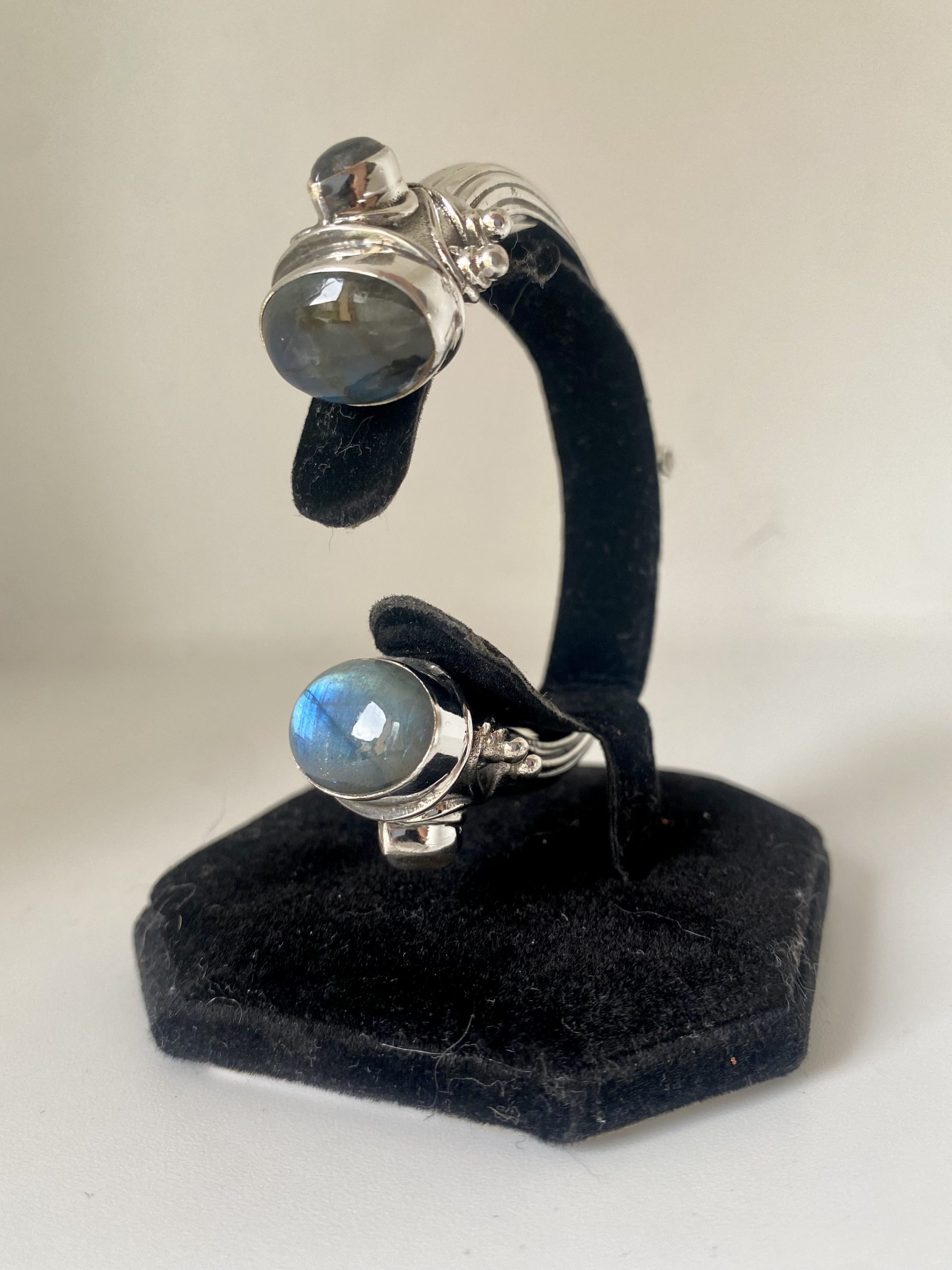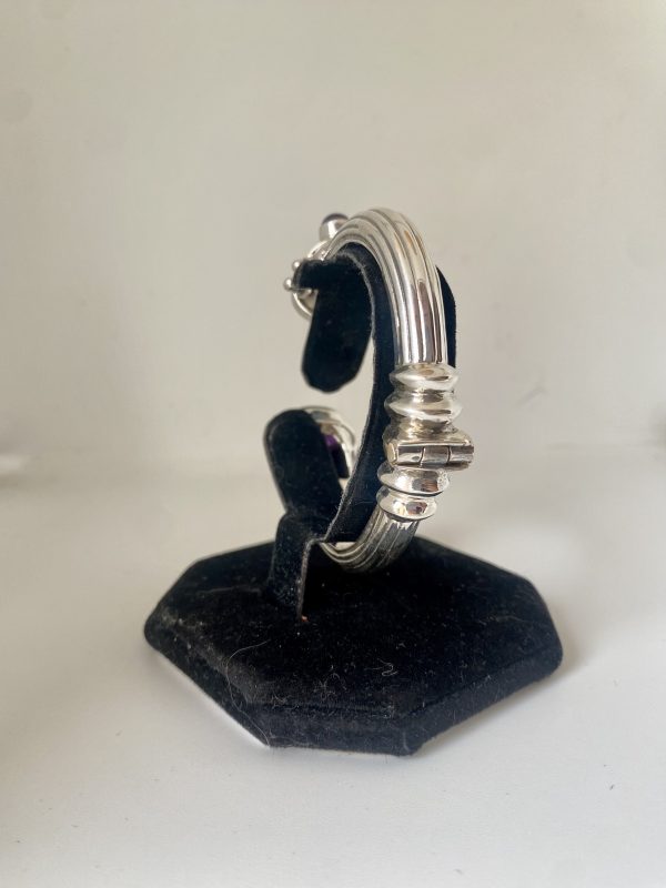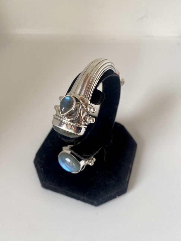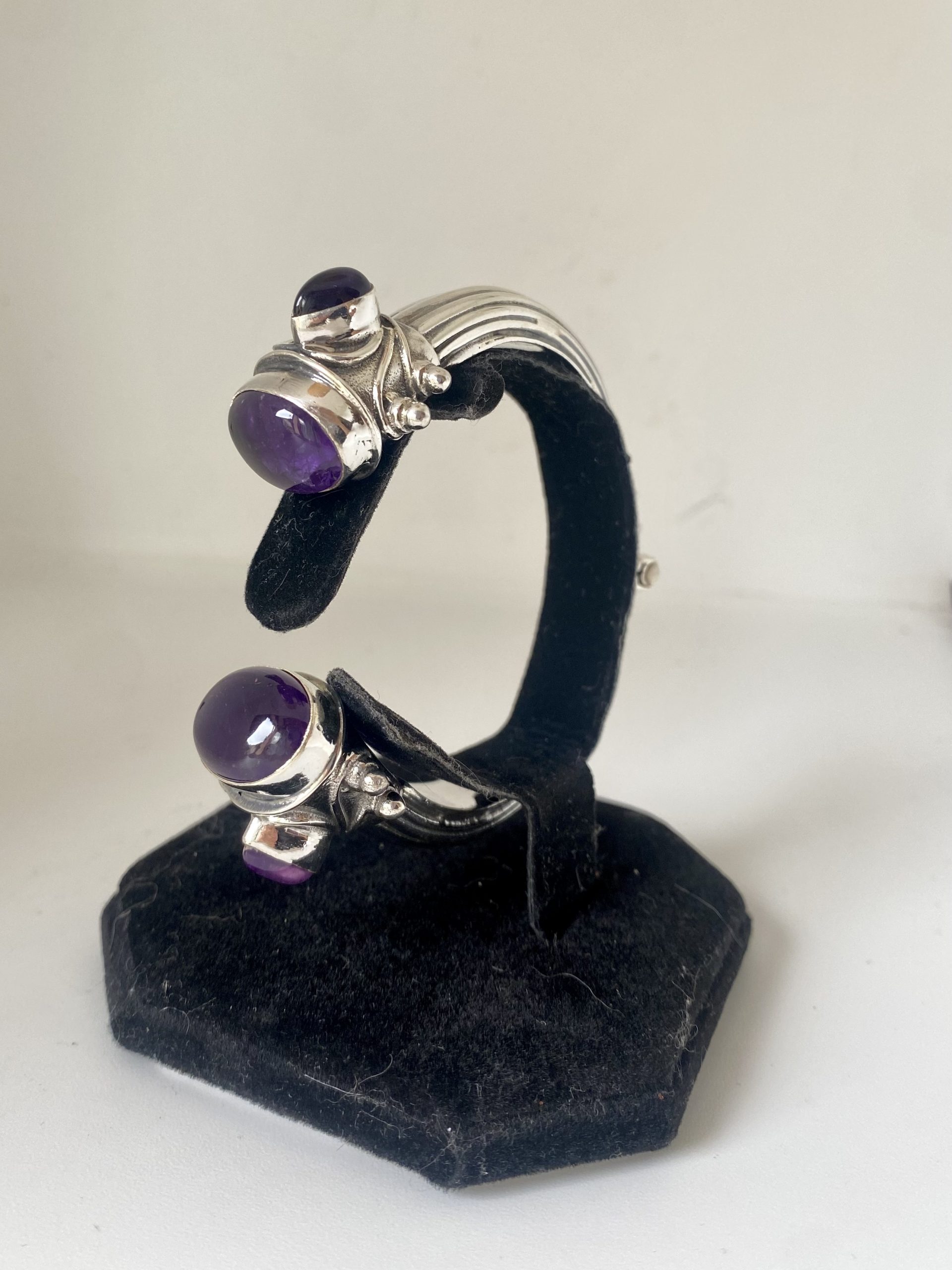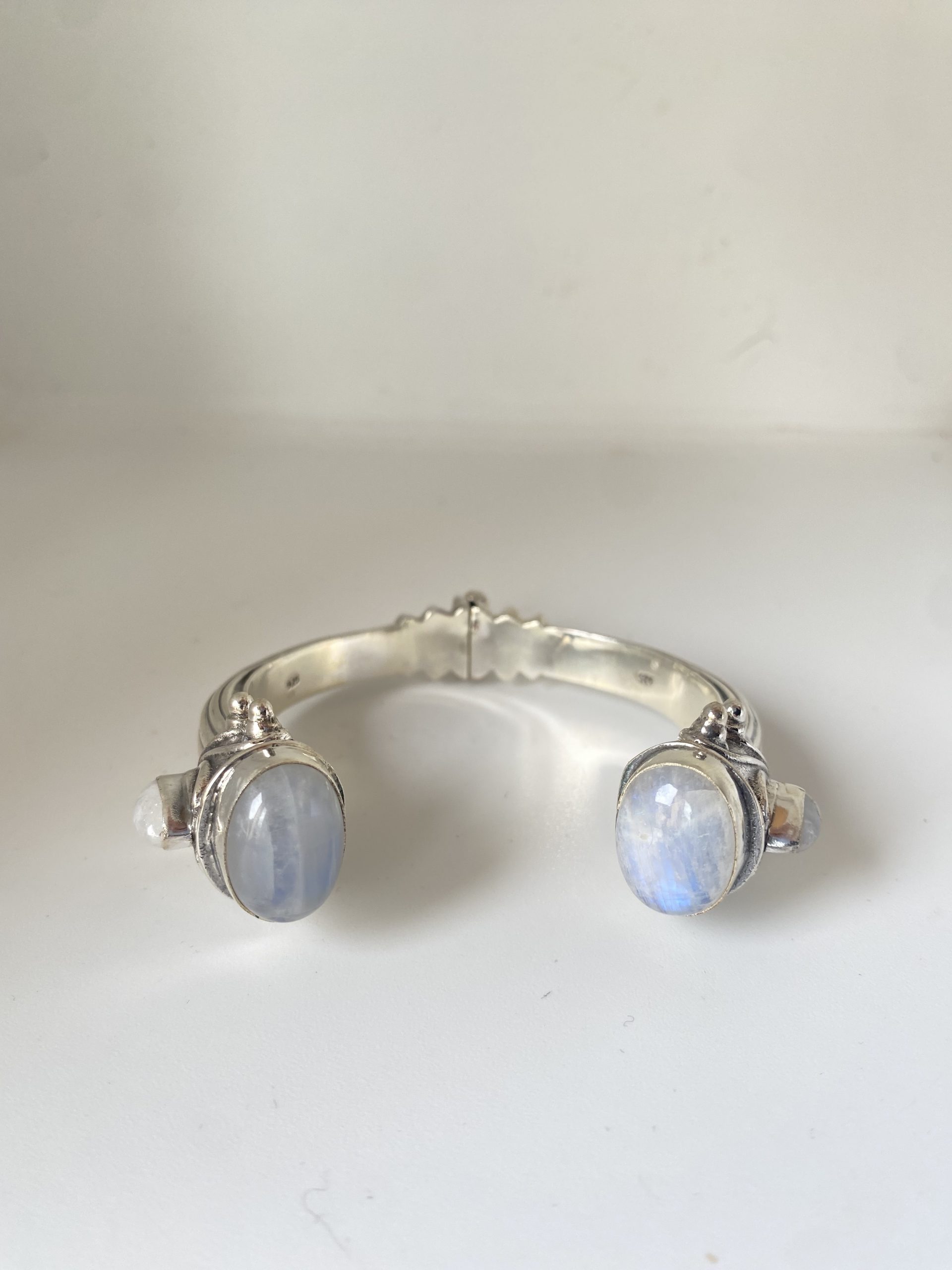 Bracelet ouvert lourd en argent 925 et pierres fines
