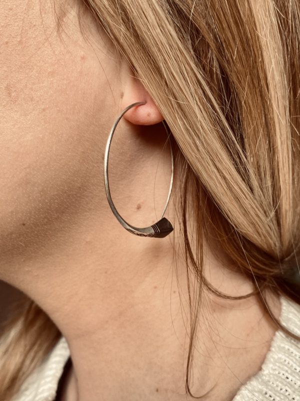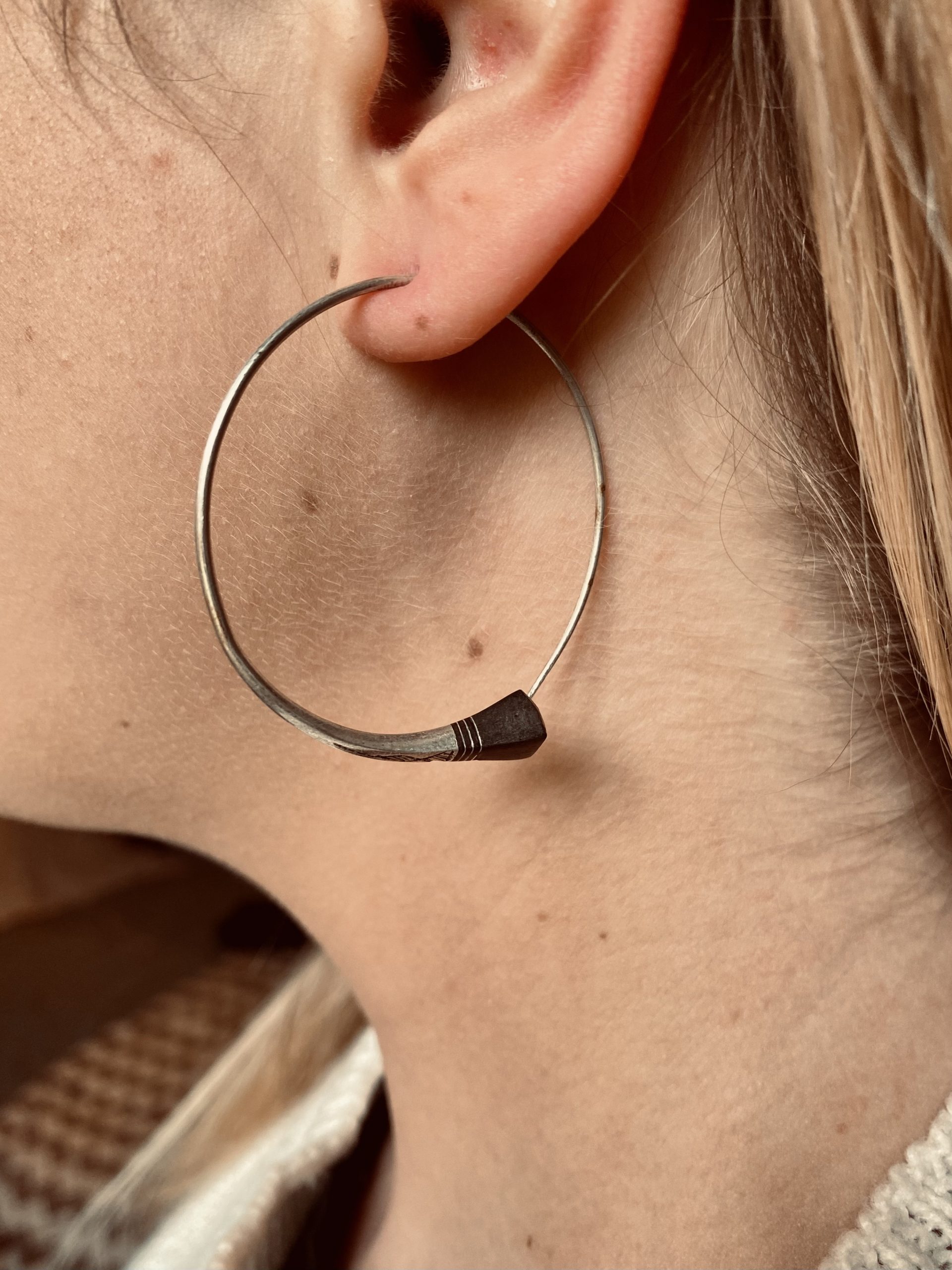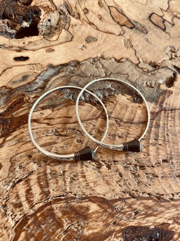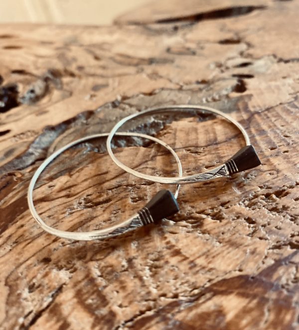 Paire de boucles d’oreilles en argent 925 style créoles et ébène