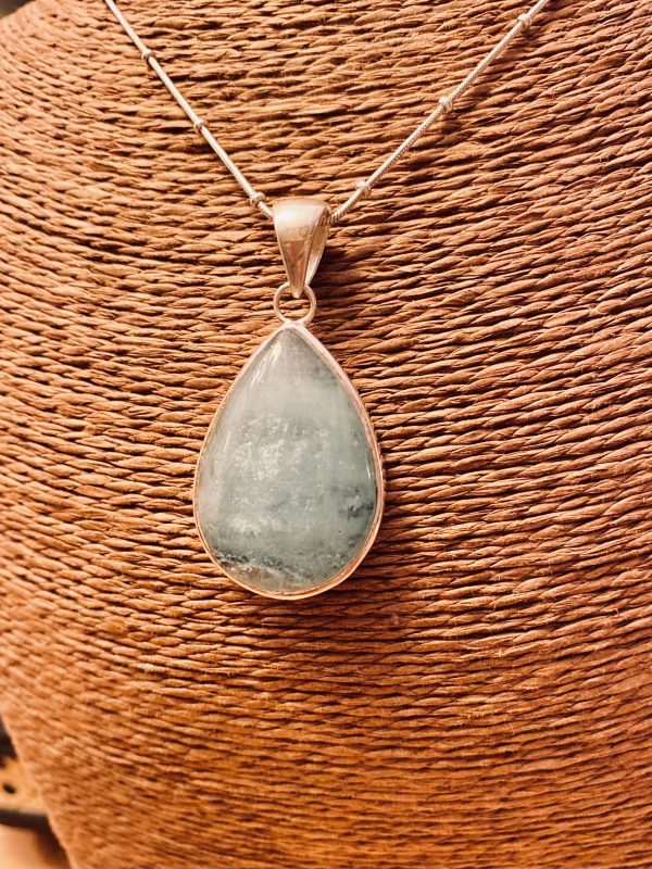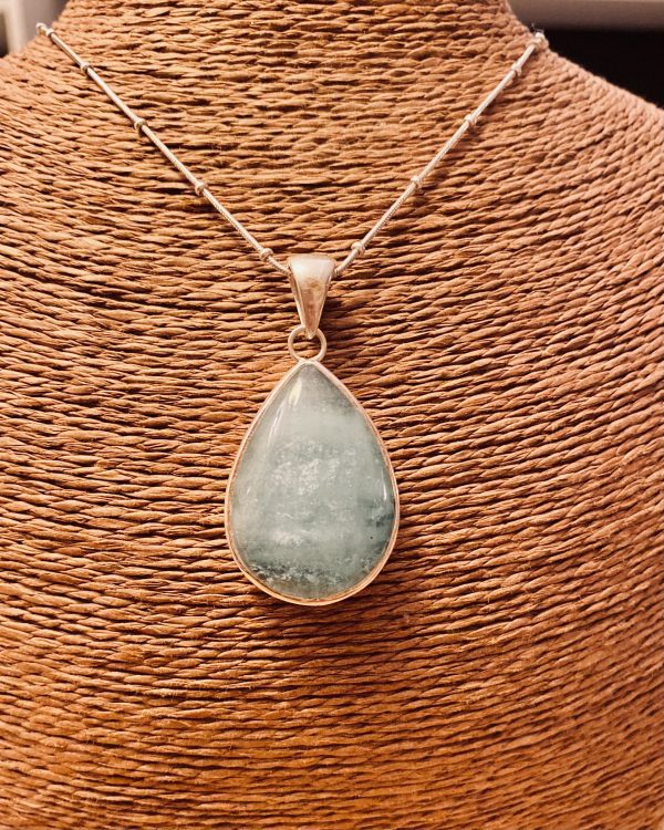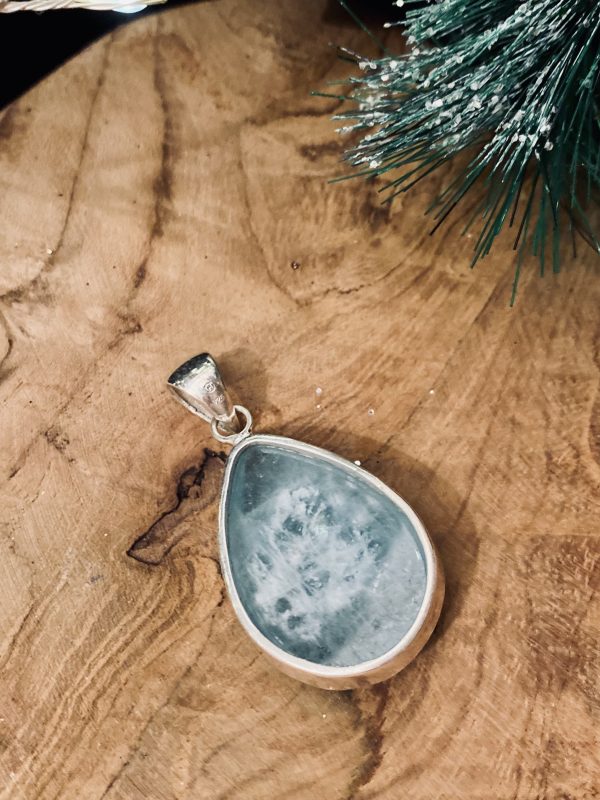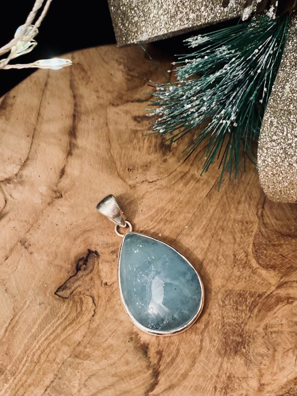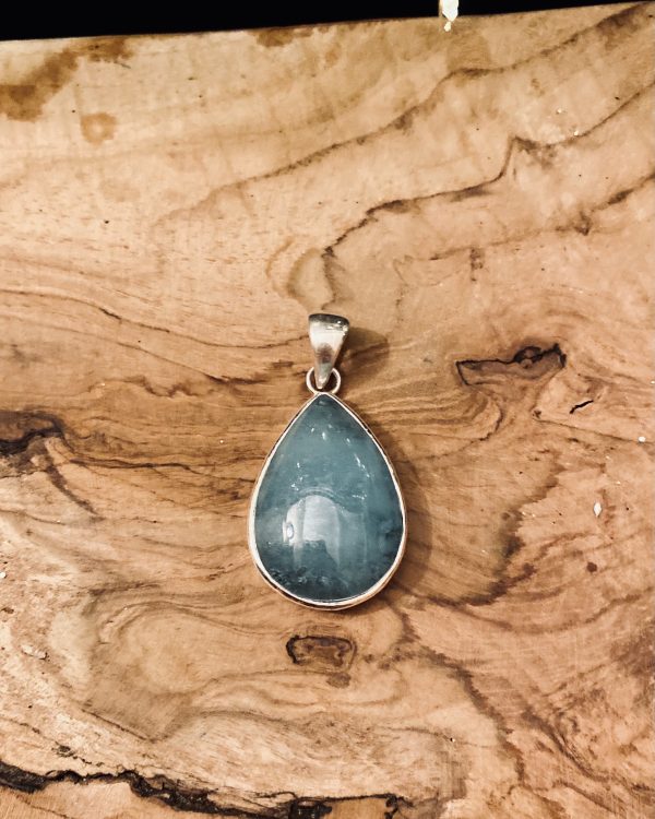 Pierre Aigue Marine de belle taille travaillé pour ce pendentif en cabochon.