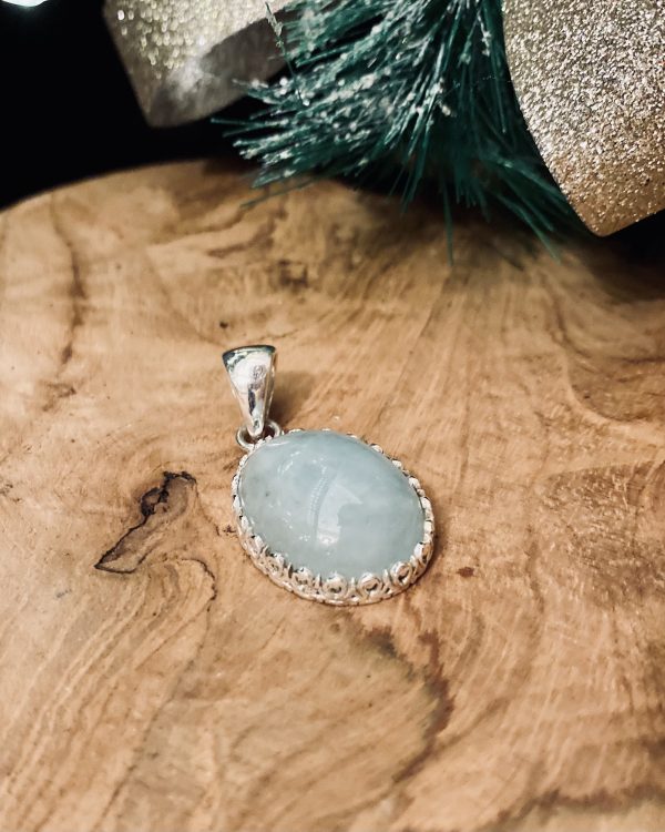 Pendentif Aigue-Marine Sertissage Argent Travaillé
