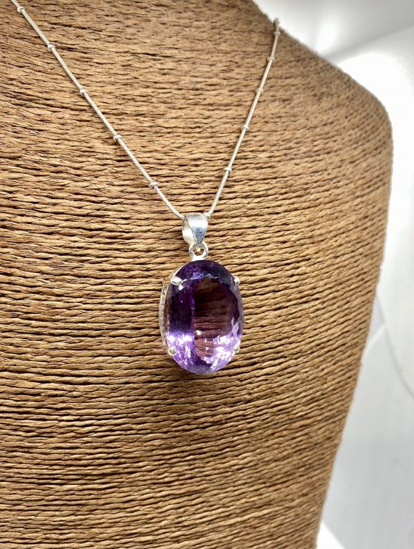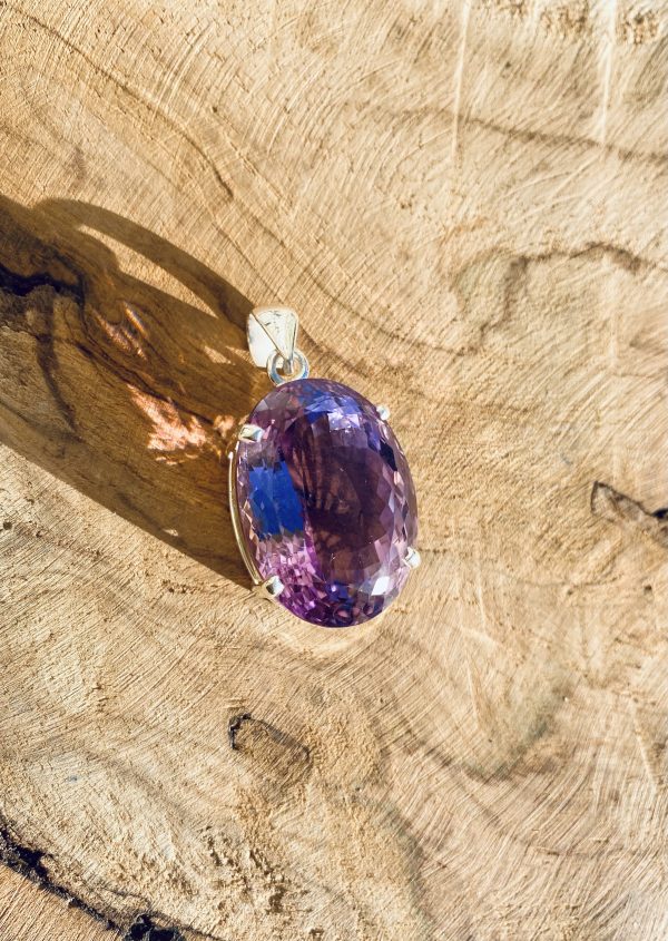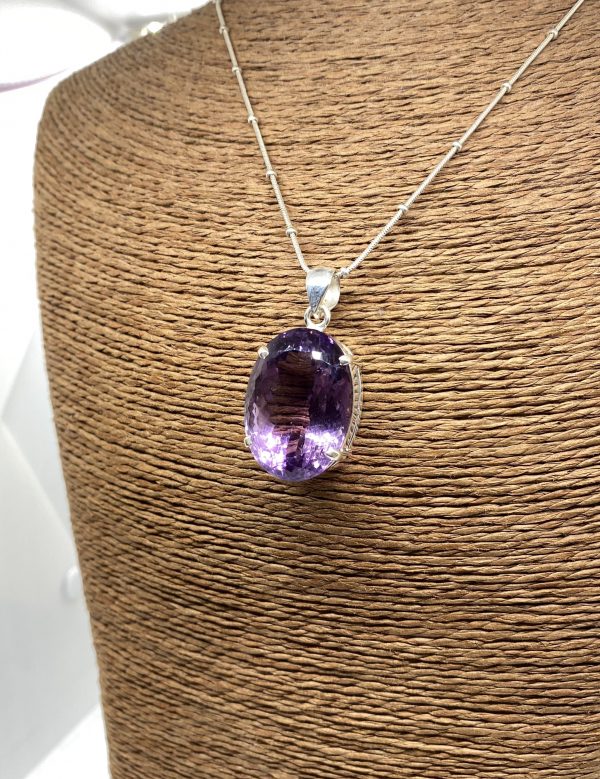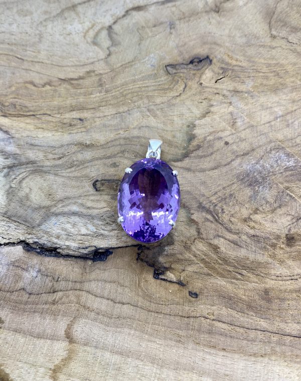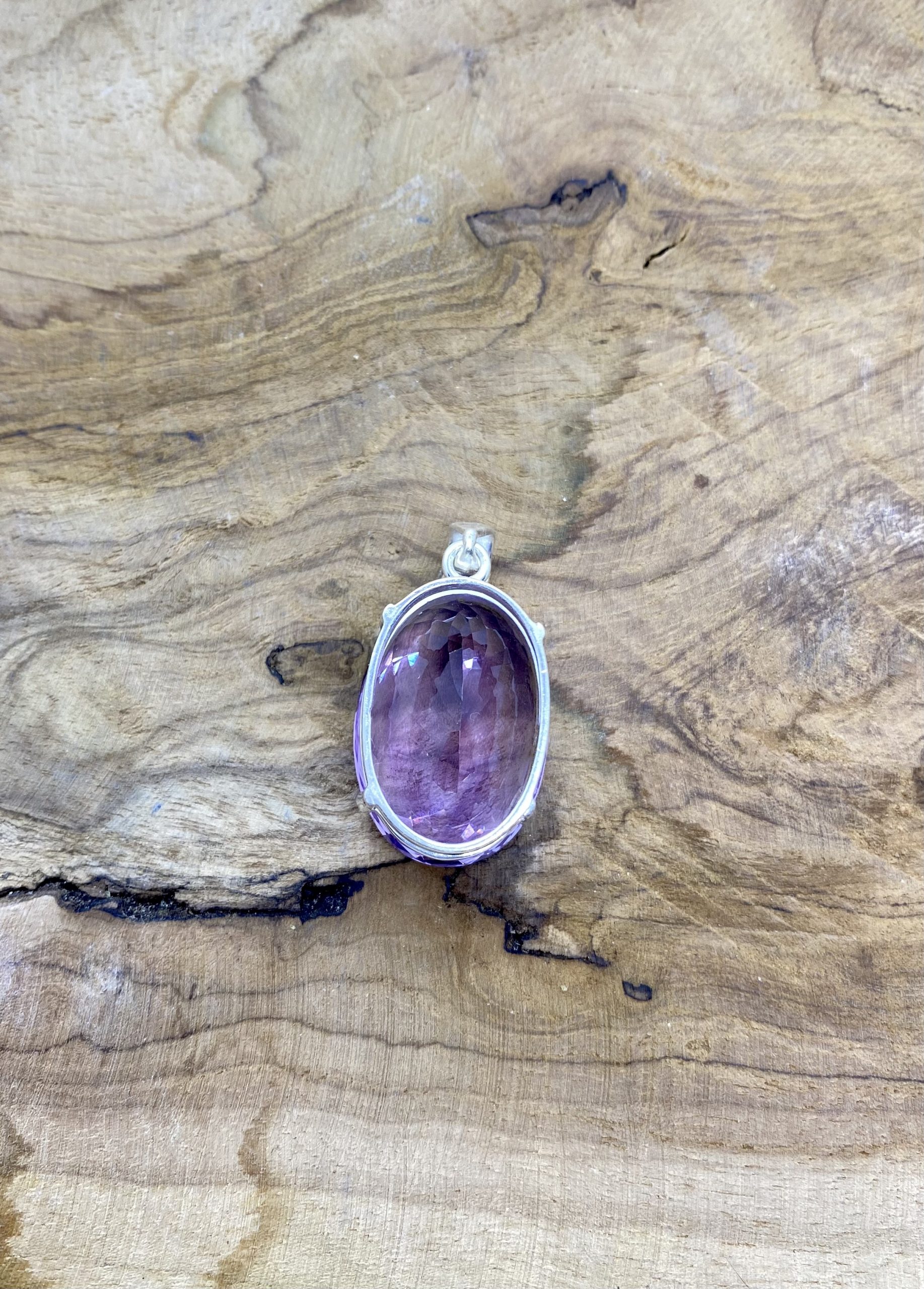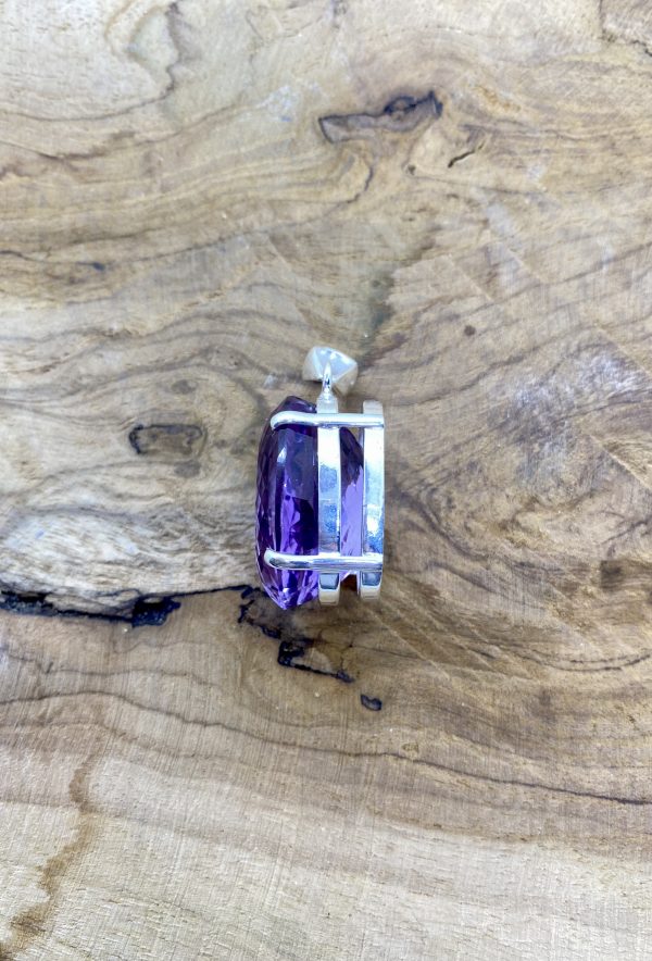 Magnifique pendentif en Améthyste facettée travaillé en hauteur.