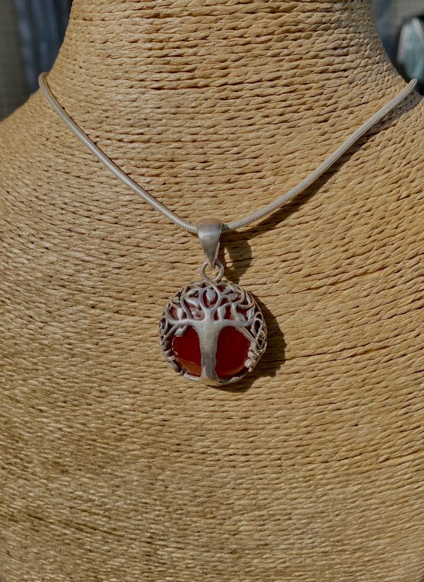 Pendentif Argent Arbre de vie Cornaline Petit Modèle