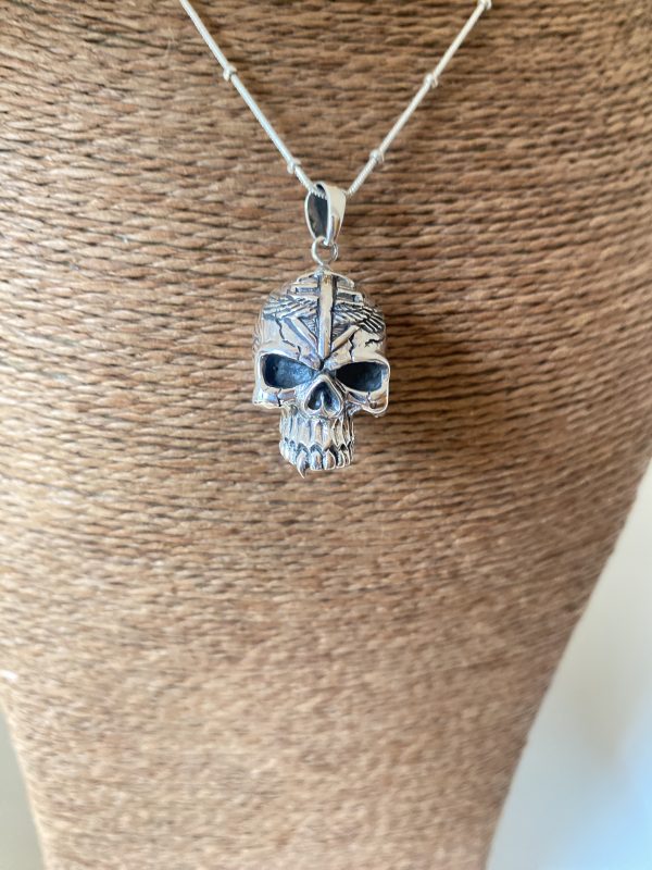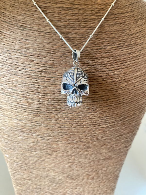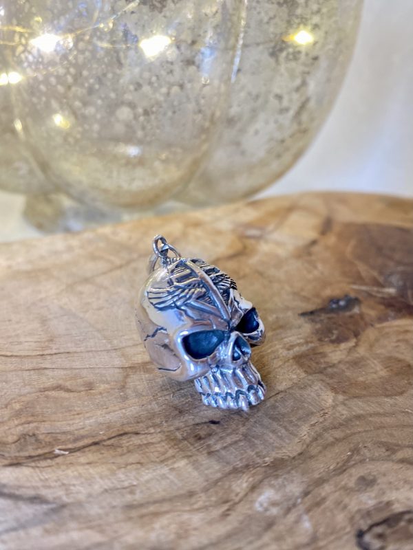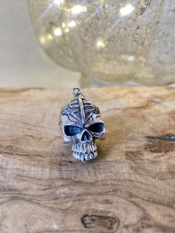 Pendentif en relief avec des ailes représentés sur le crâne, bélière mobile.