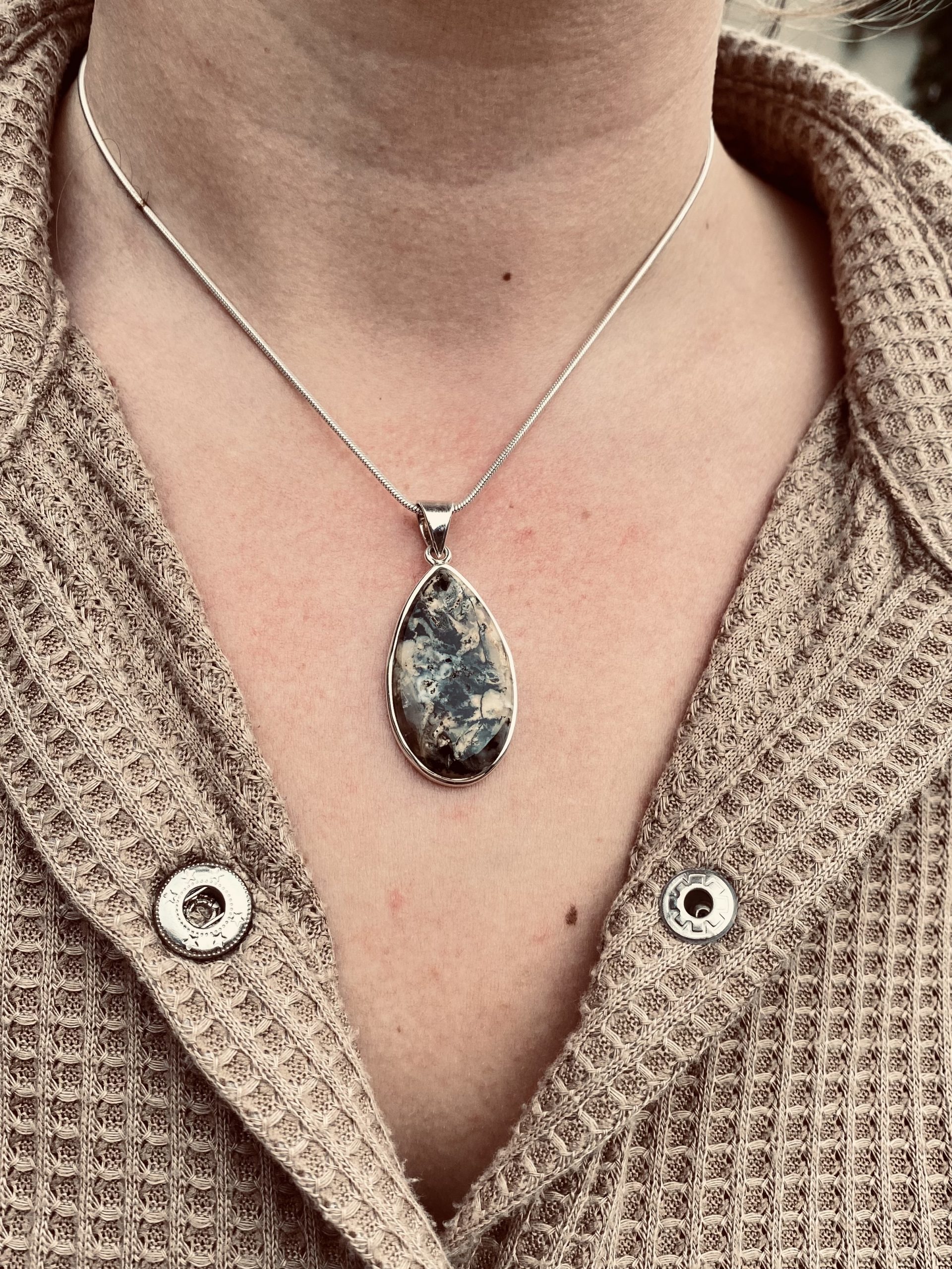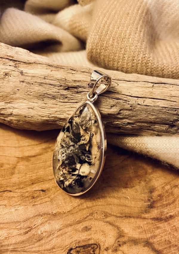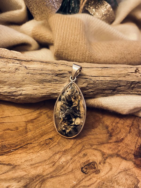 L’agate Montana est une très belle pierre de la famille des agates avec un fond transparent avec une déclinaison de marron et de noir.