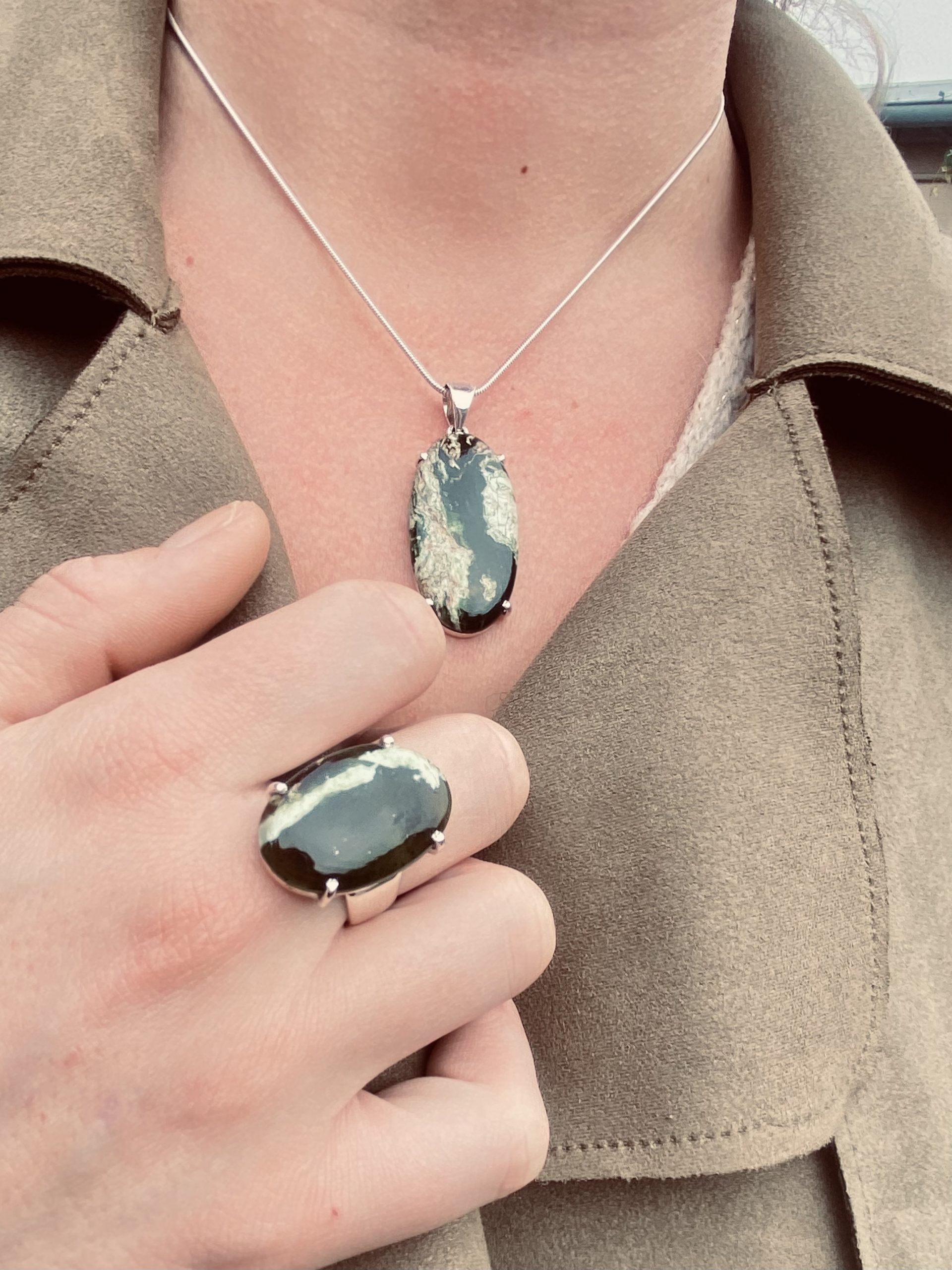 Pendentif en chrome calcédony ou calcédoine chrome en français.