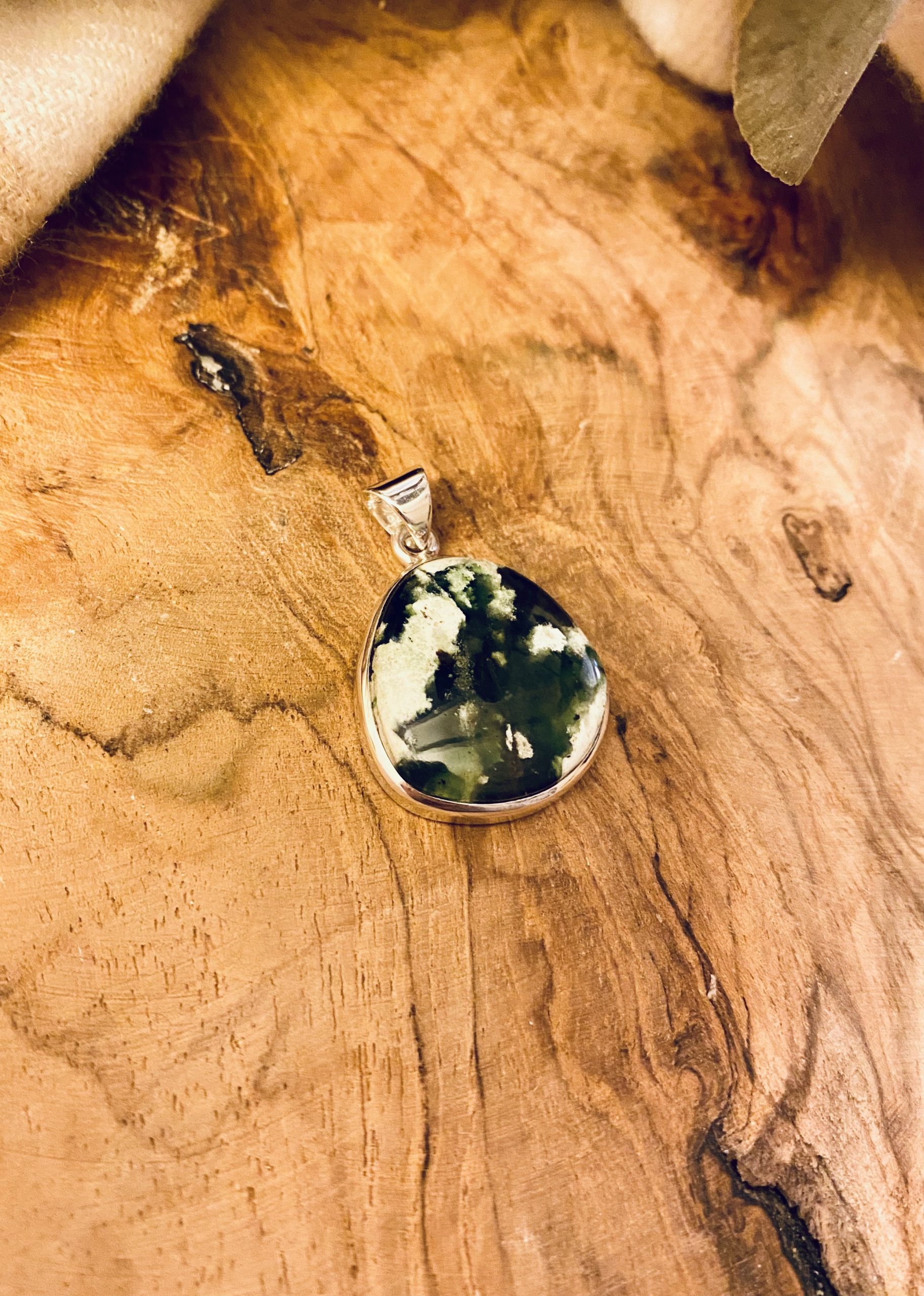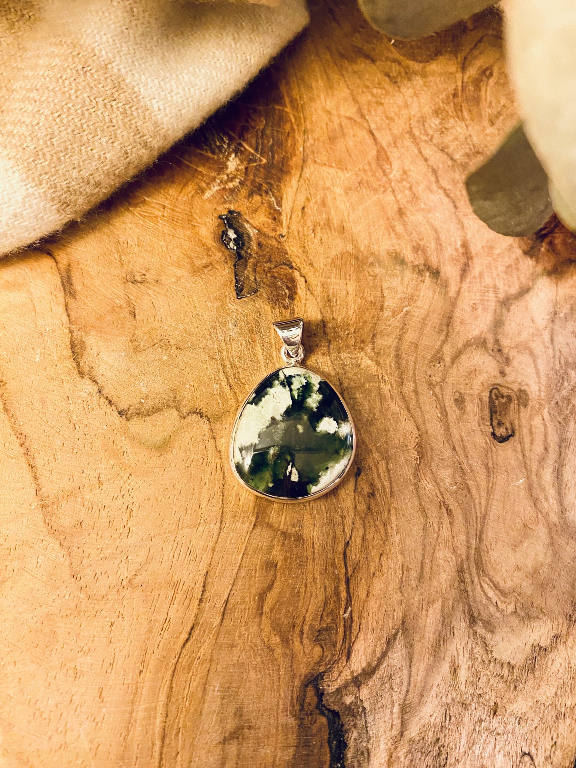 Pendentif en chrome calcédony ou calcédoine chrome en français.
