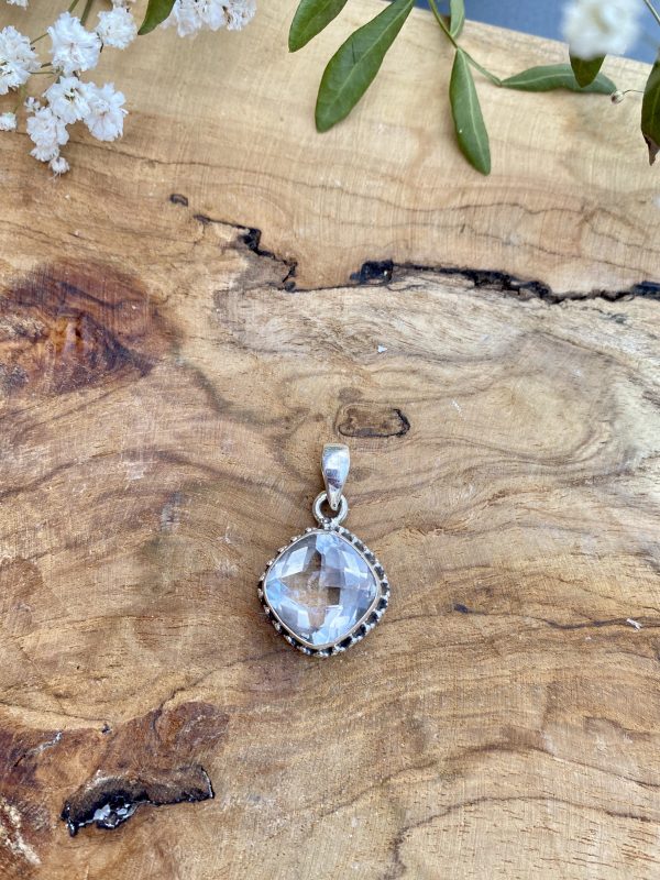 Pendentif Argent et Cristal de Roche Losange facetté