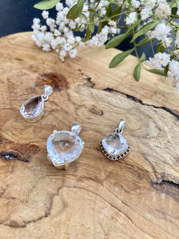 Pendentif en cristal de roche et argent 925