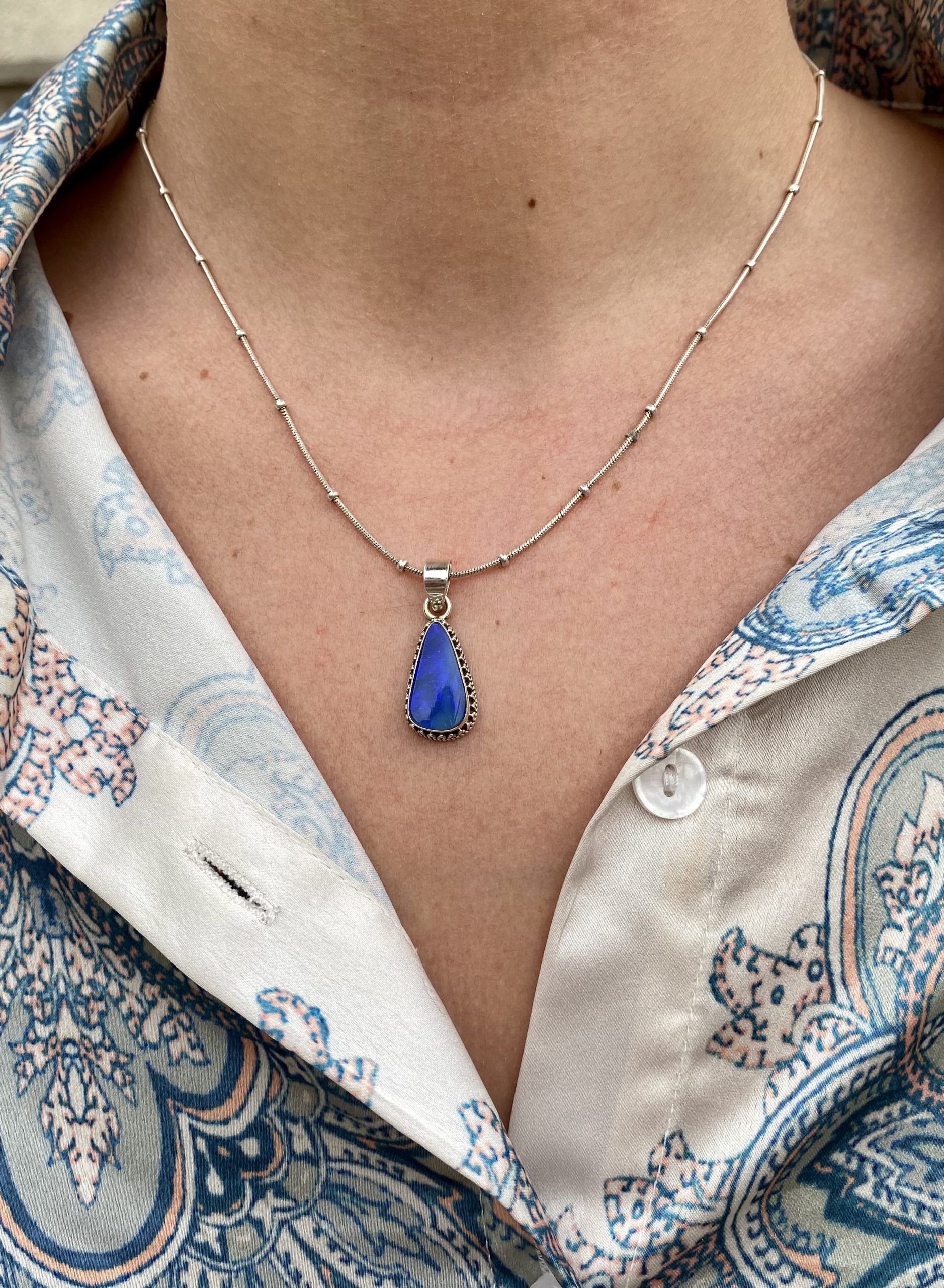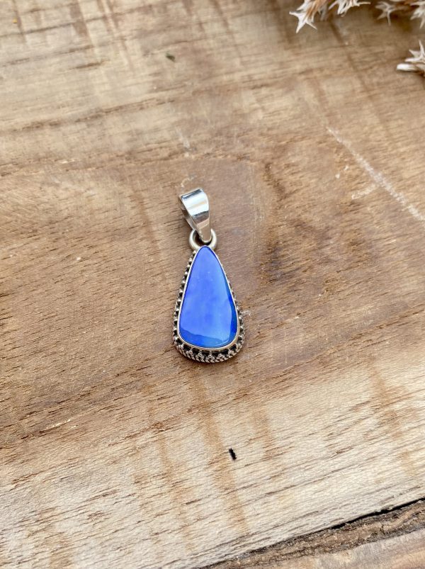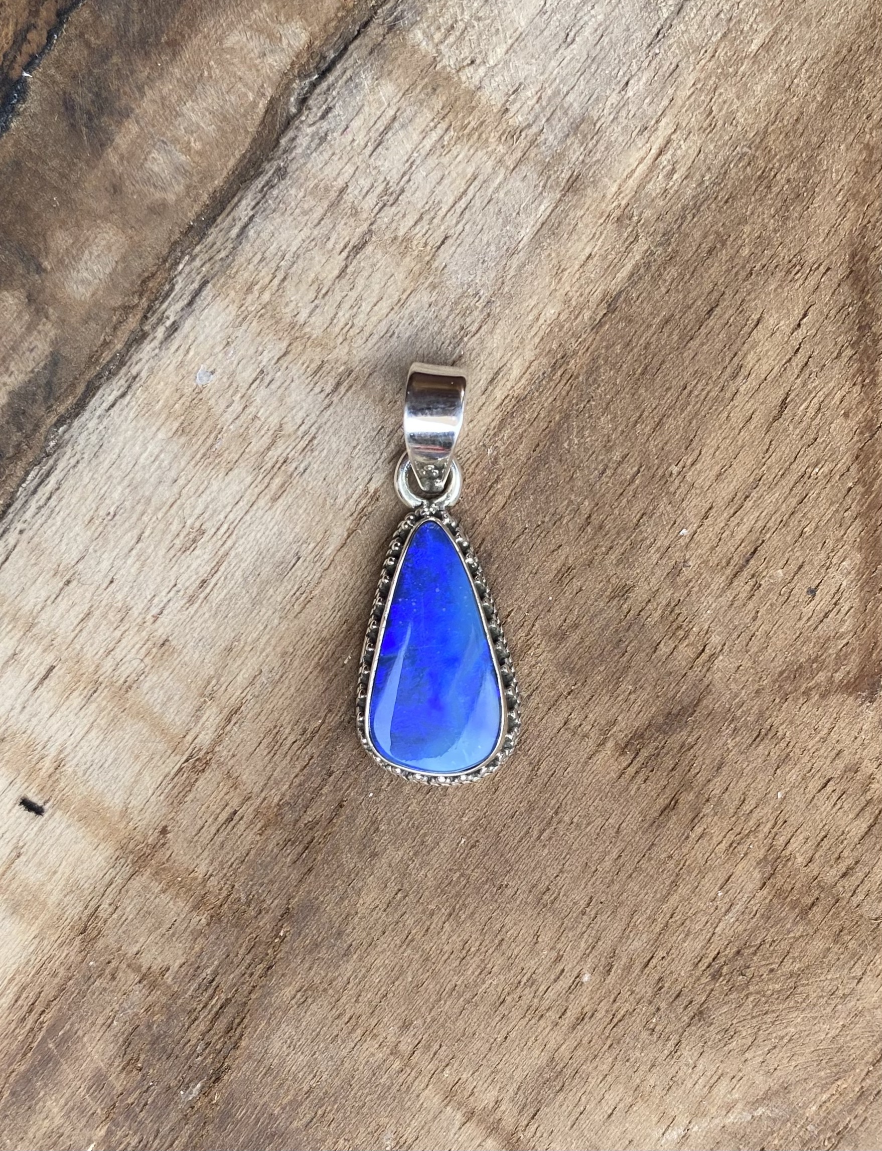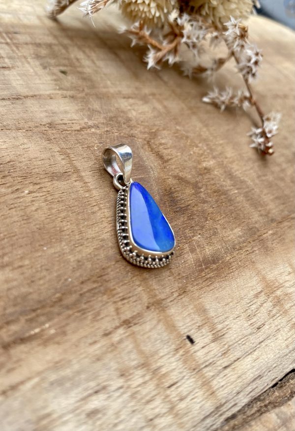 Pendentif en opale d’Australie de couleur bleu et e forme de triangle.