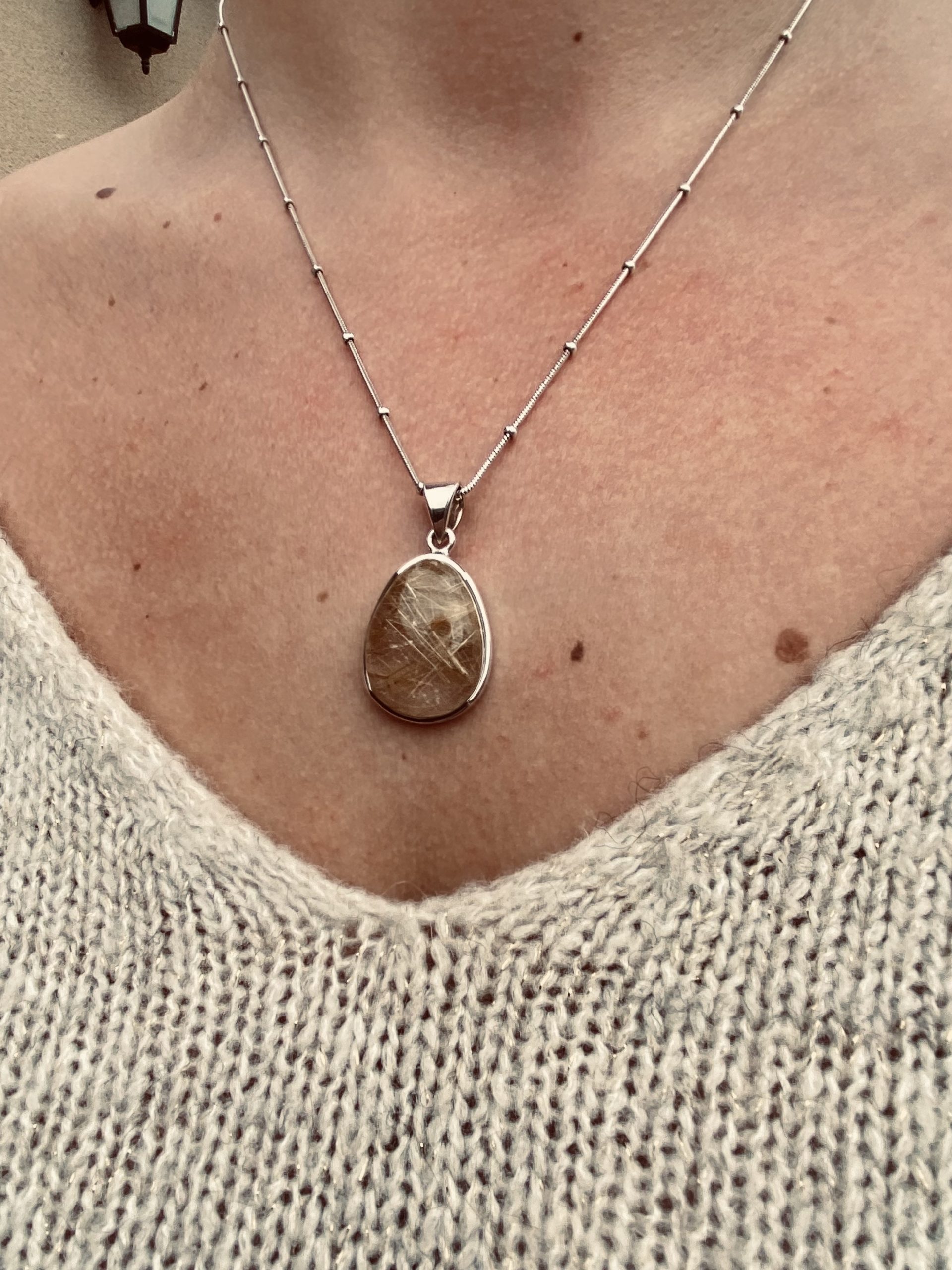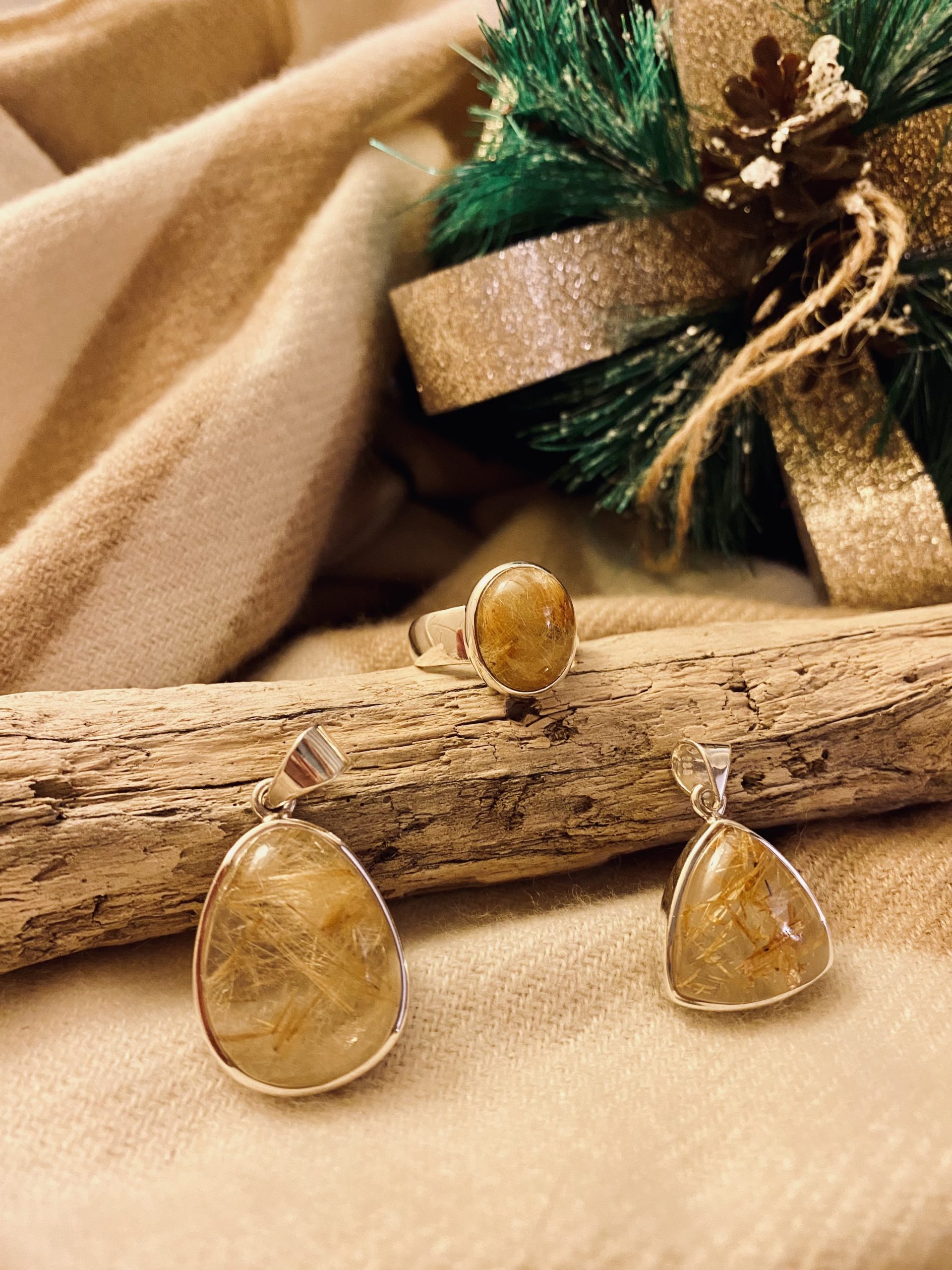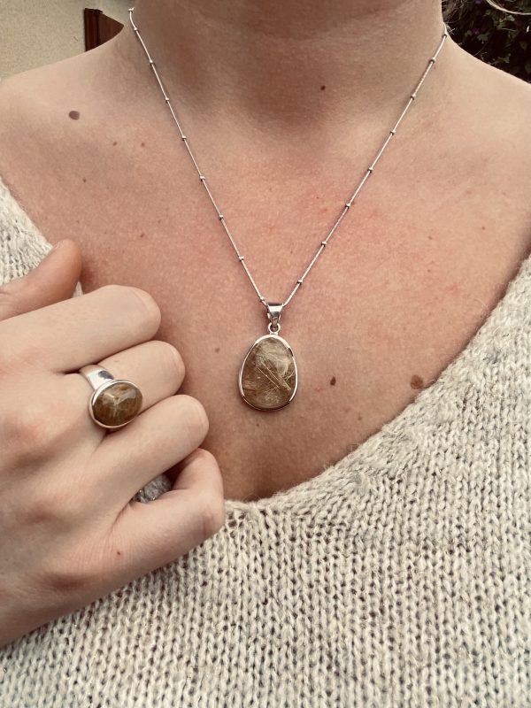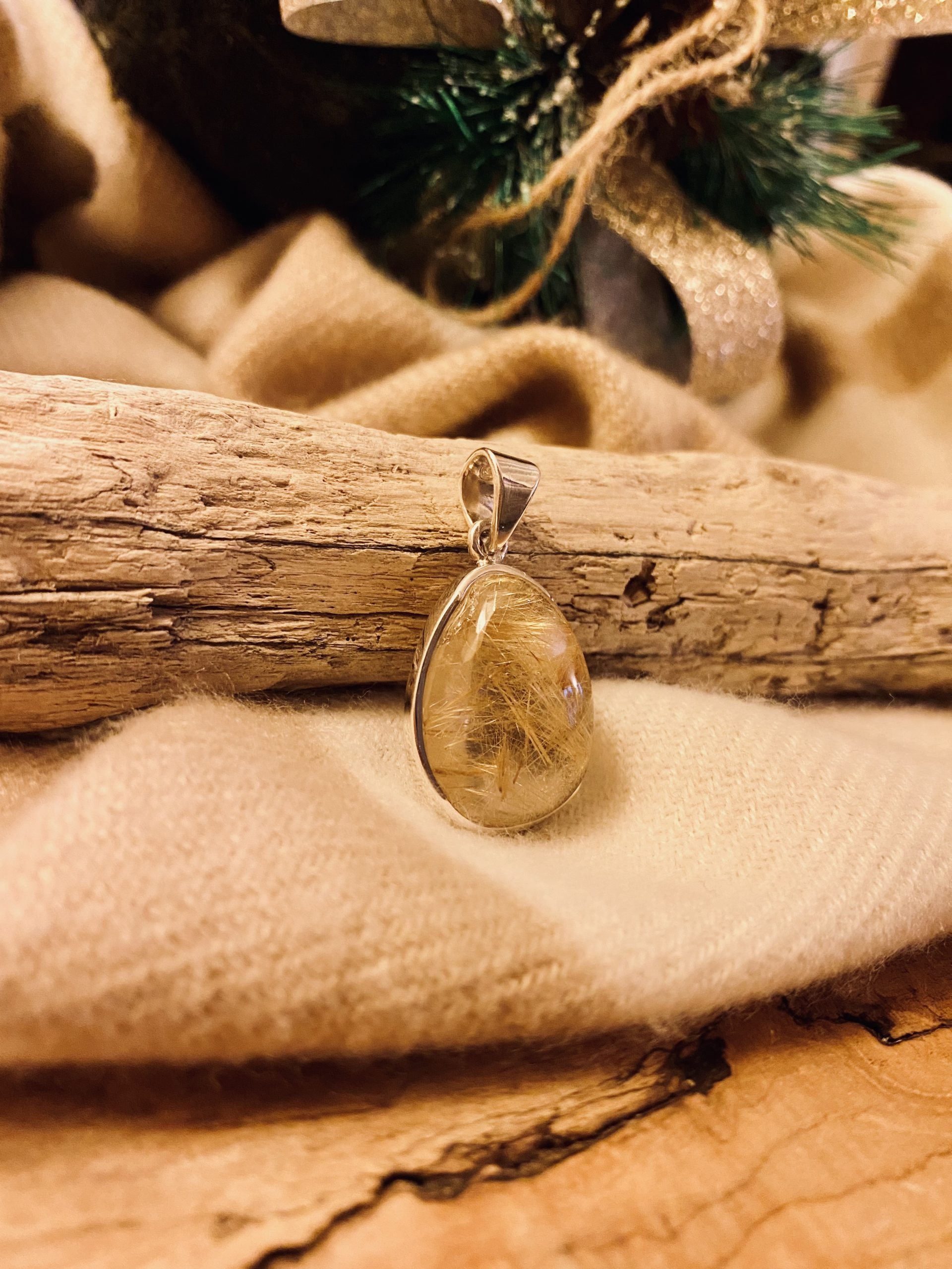 Le quartz rutile, cheveux d’ange ou cheveux de venus, tient son nom des filaments couleurs or présent dans la pierre. Le rutile s’inscrite dans le quartz durant la cristallisation et donne des effets d’aiguilles dorées.