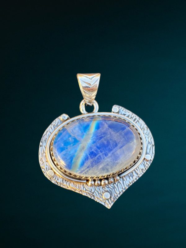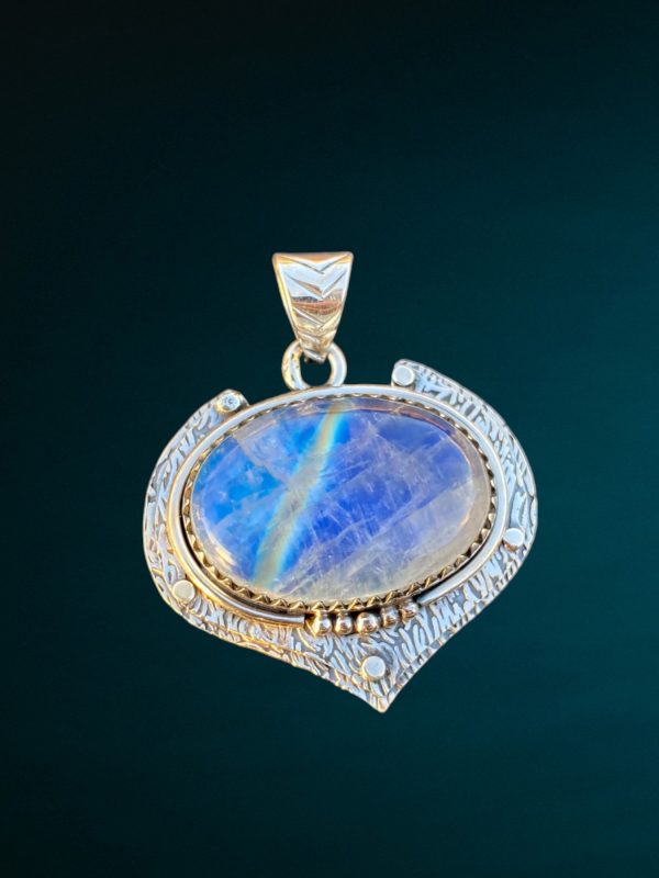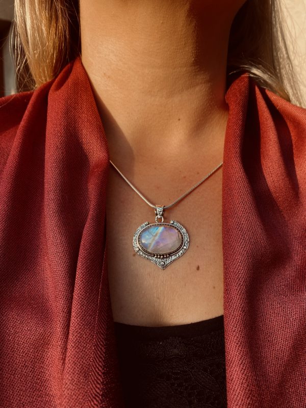 La pierre de Lune est précisément la pierre de lune Arc-en-ciel est la pierre de féminité. C’est une pierre synonyme de féminité, de maternité et d’innocence.