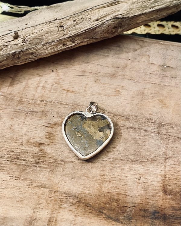 Pendentif en forme de coeur et sertissage clos autour de la pierre.