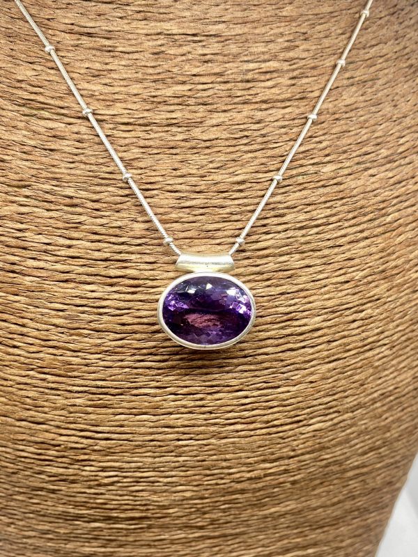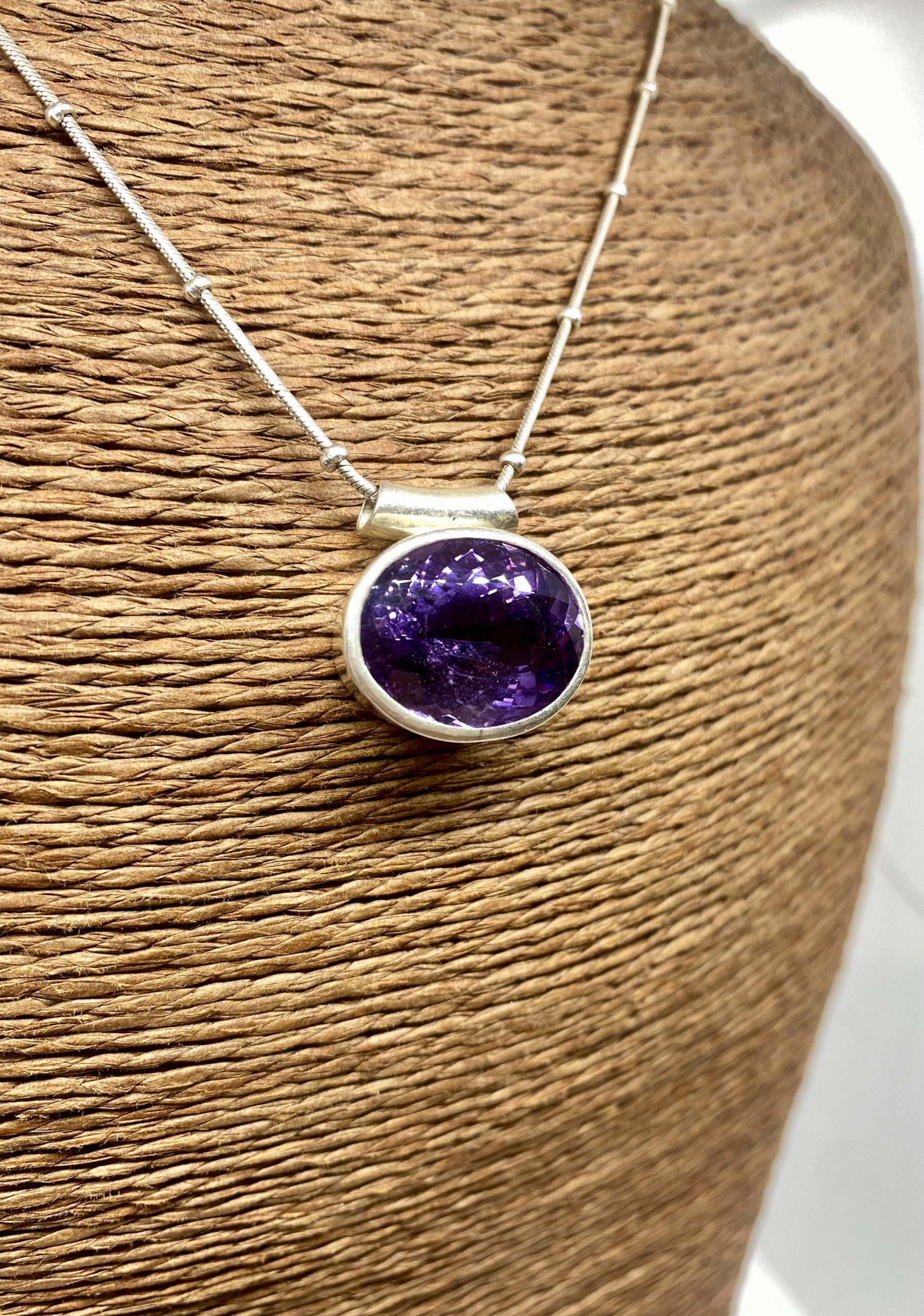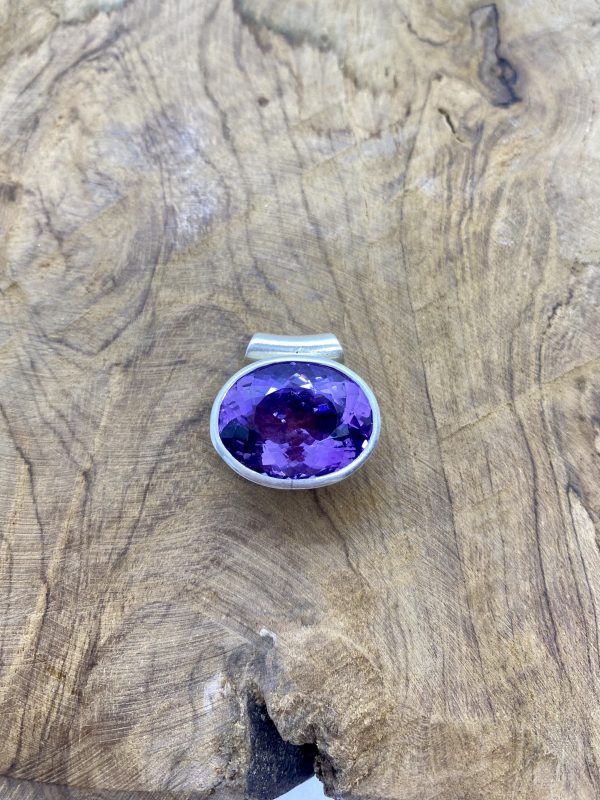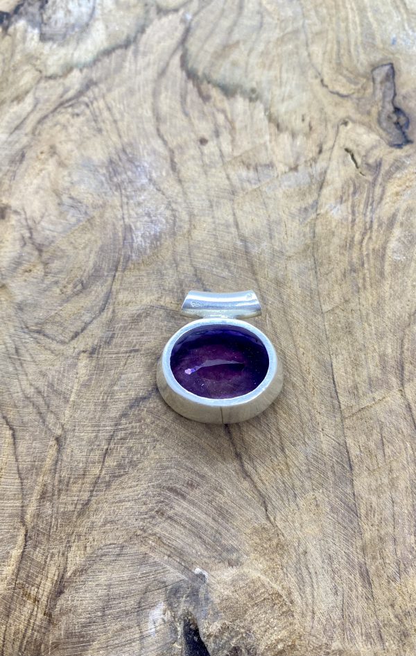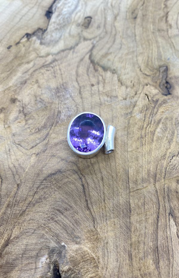 Pendentif Ovale Améthyste Facettée et Argent