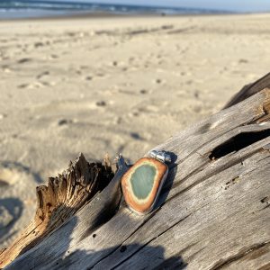 Travaillé en cabochon et sertissage tout autour en argent 925, le sertissage au dos n’est pas plein, ce qui permet à la pierre de garder de la transparence.