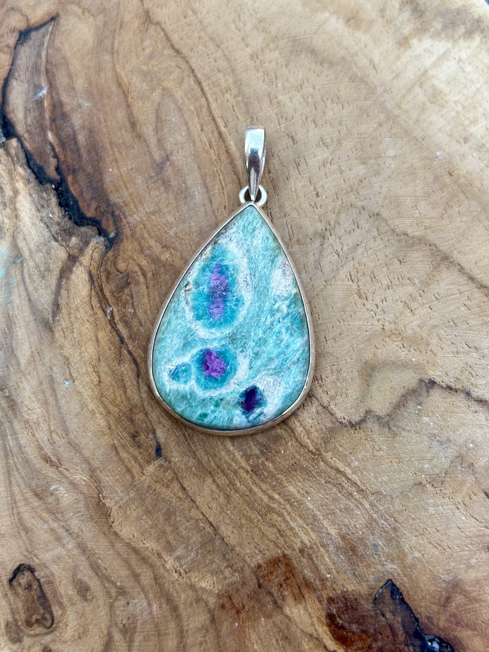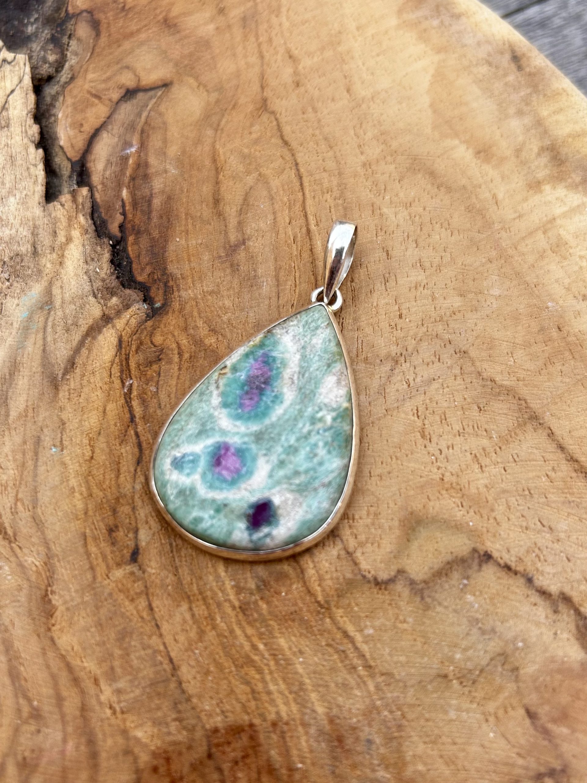 Pendentif en Ruby sur Fuschite et argent 925