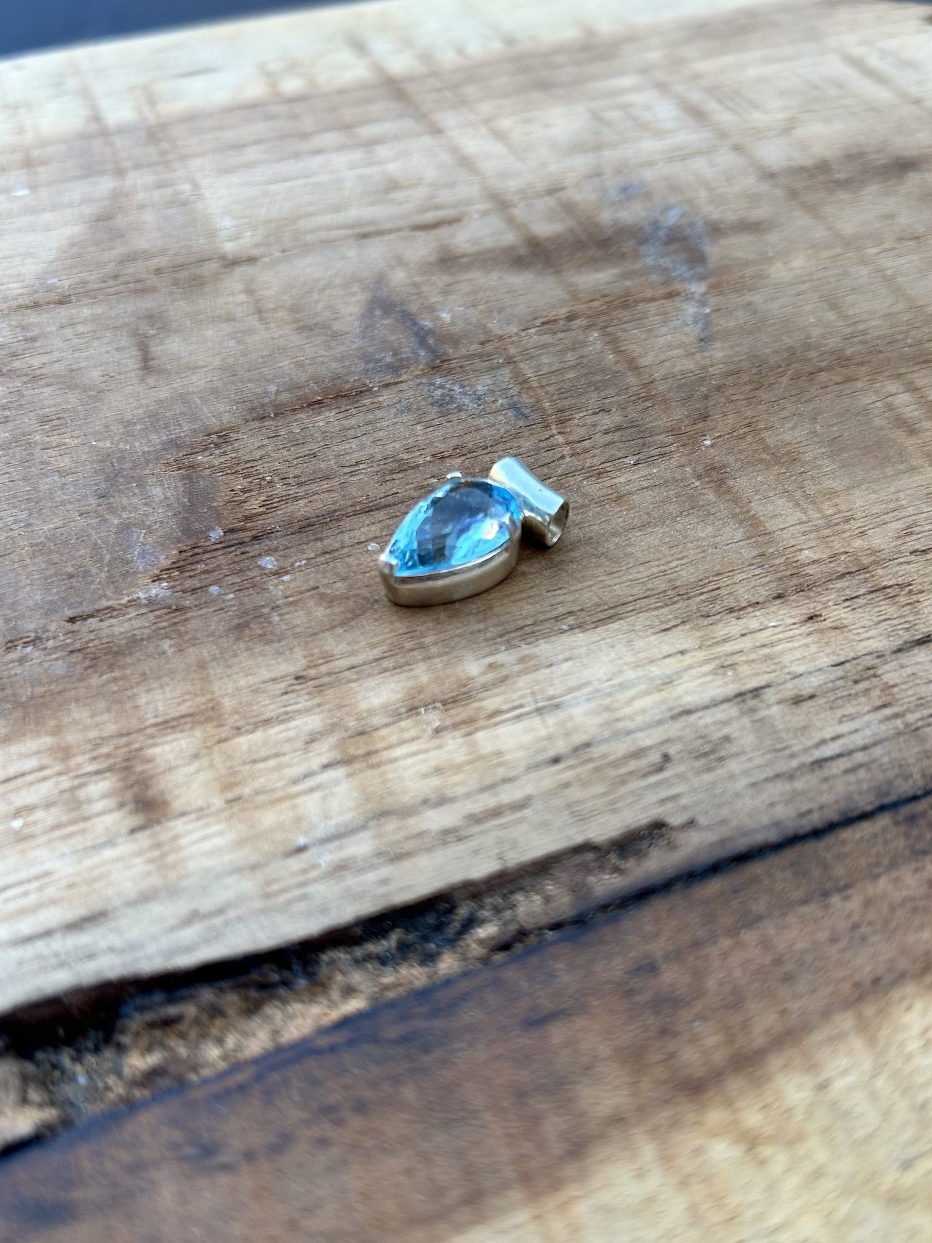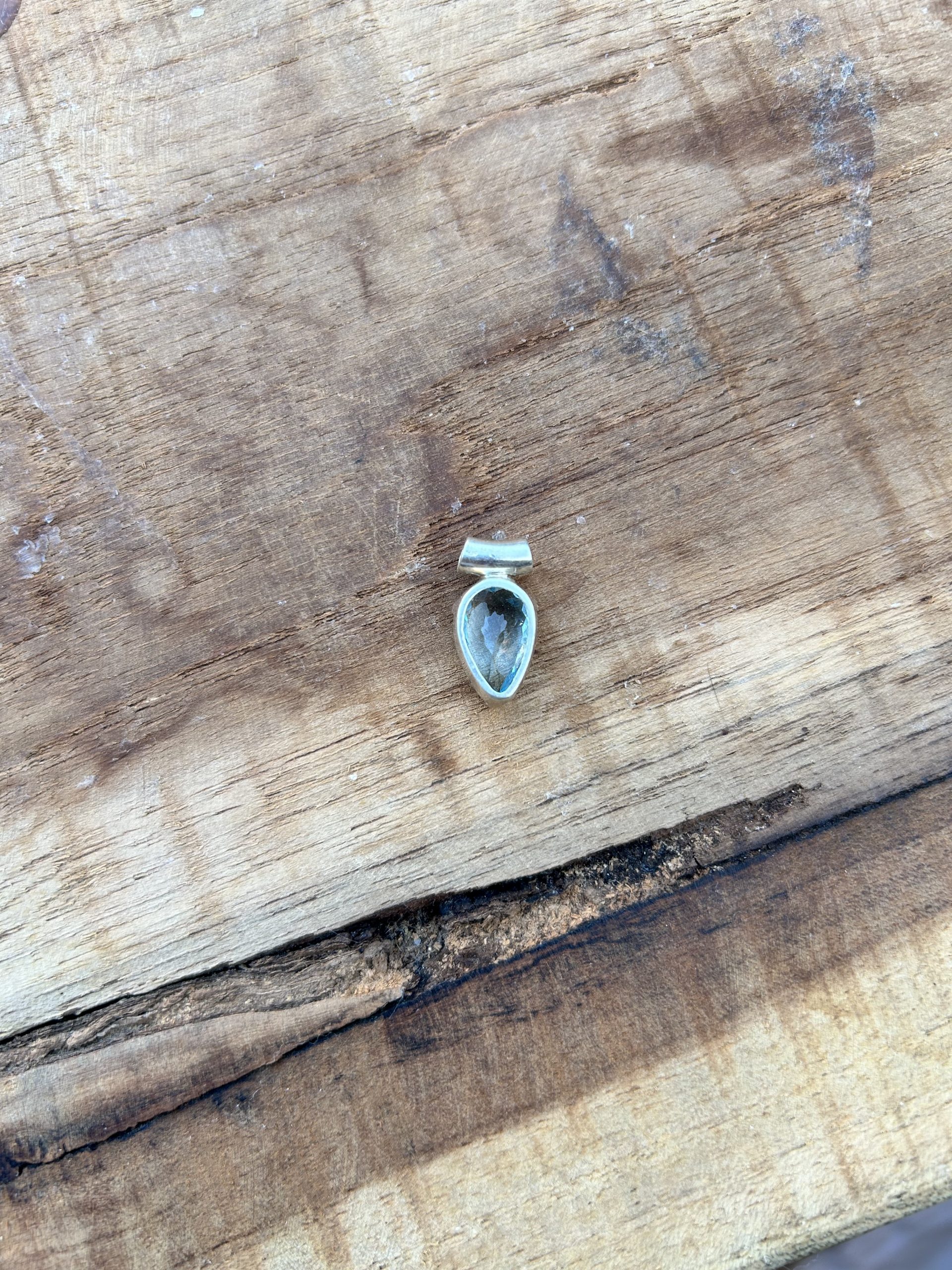 La topaze bleue est facettée de forme de goute, Sertissage argent